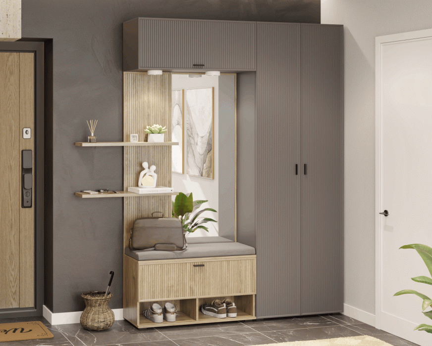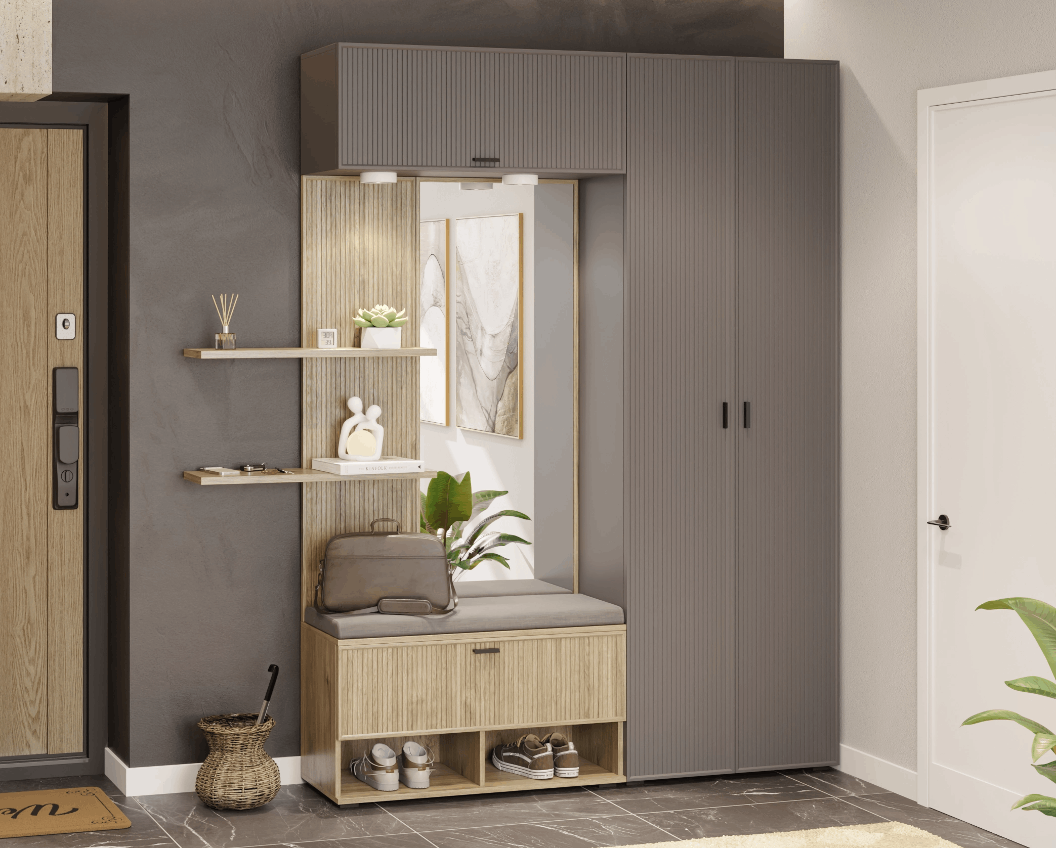 Отзывы о Столплит Модульная прихожая Стелла композиция 2 Серый Оникс Ребристый/Гикори Светлый Ребристый