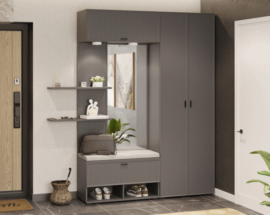 Модульная прихожая Стелла композиция 2 (Серый Оникс Ребристый) Код I0000455835
