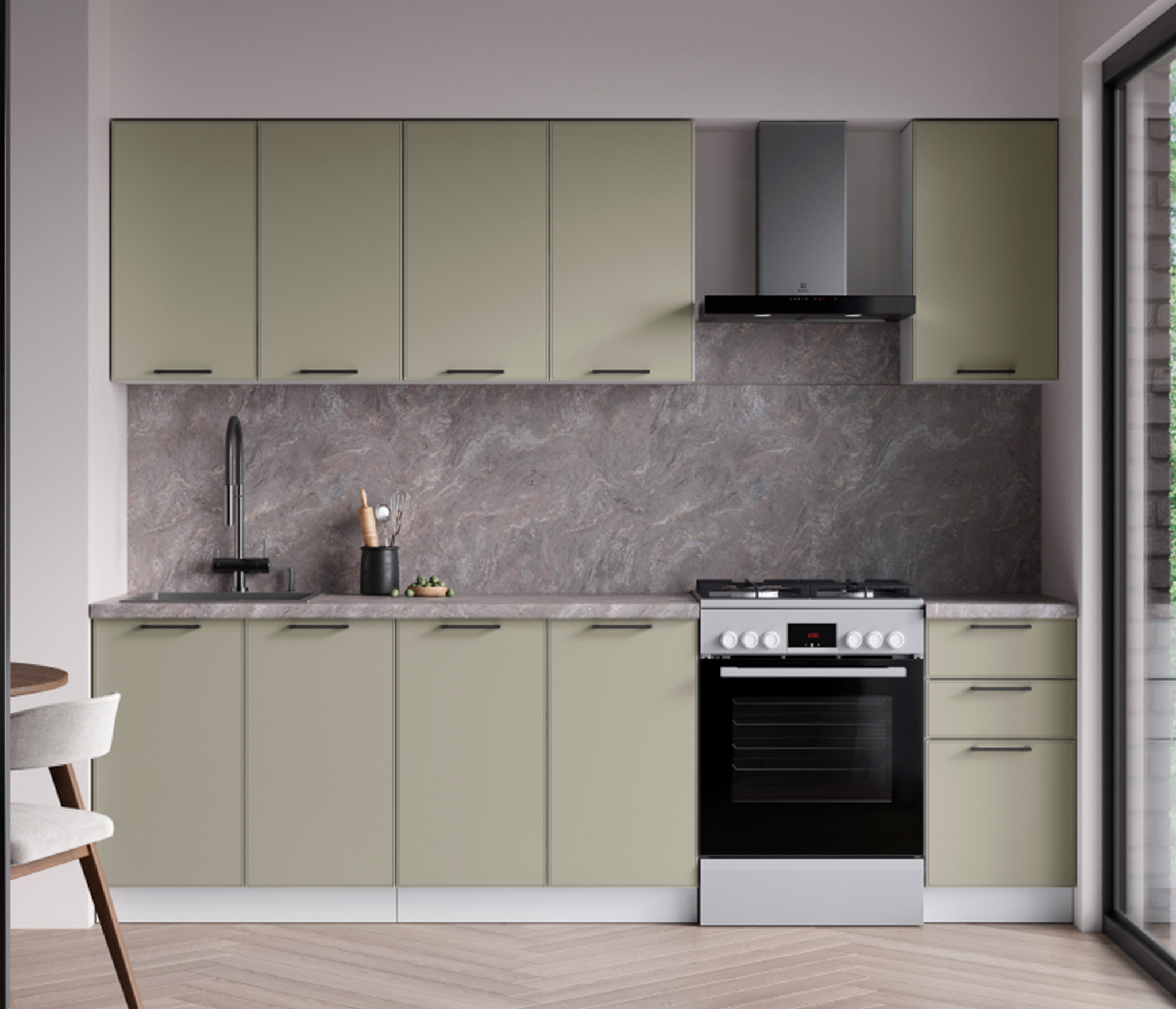 Размер нижних модулей по столешнице: 2000х842х600 мм.