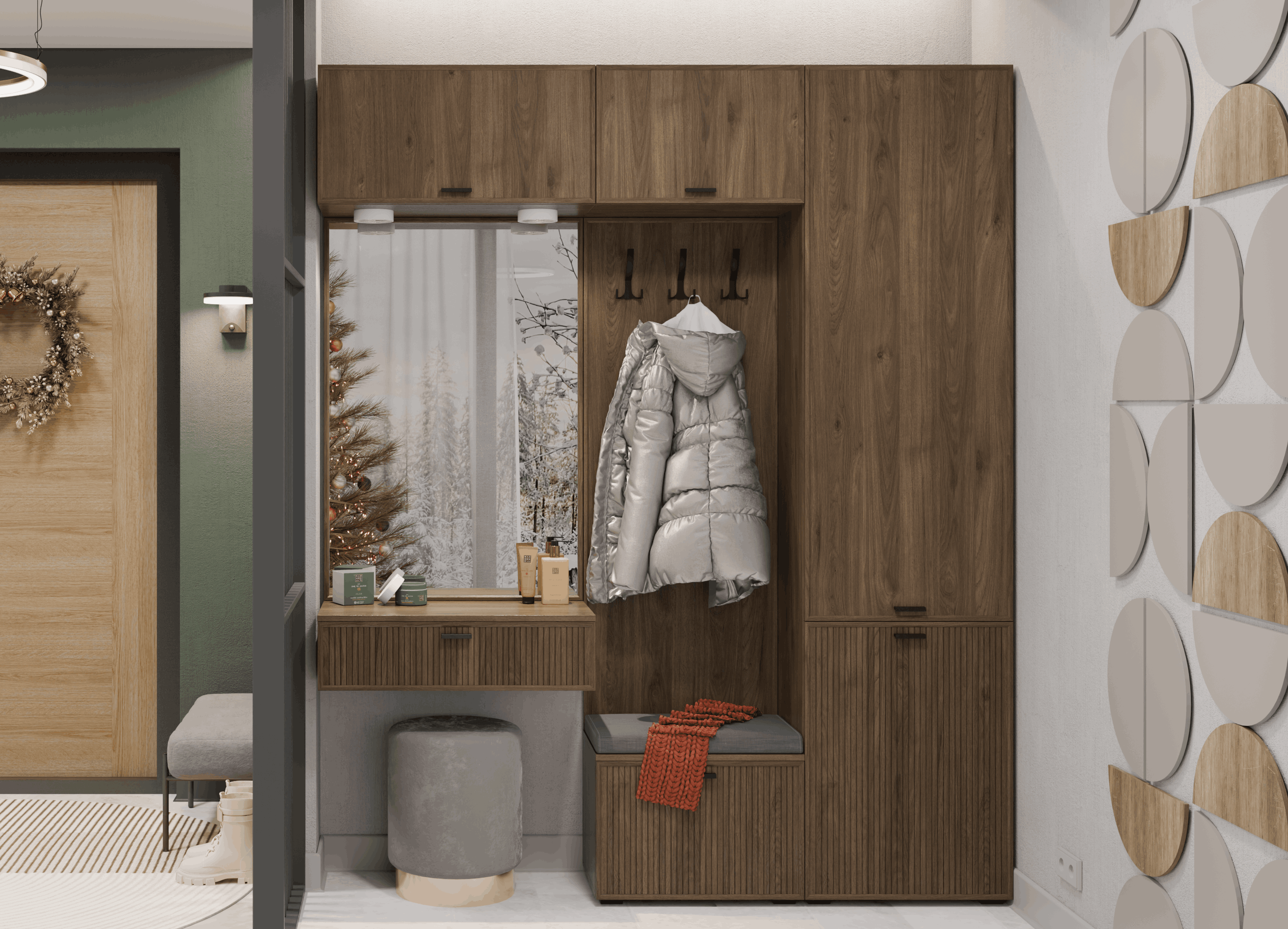 Прихожие СТЕЛЛА воплощают в себе актуальные тенденции мировой мебельной моды и позволяют создавать функциональные интерьеры в современном стиле, обеспечивающие высокий уровень комфорта. Сочетание нейтральных фоновых цветов и акцентных текстур дерева дают возможность открыть новые грани интерьера. Возможность использования различных вариантов вставки — дополнительное преимущество при планировании прихожей.