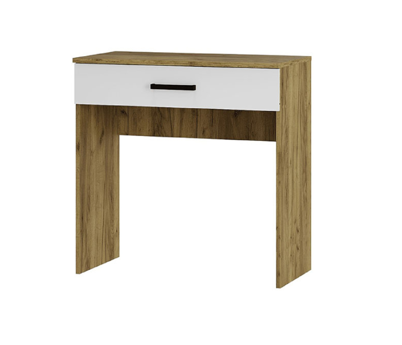 Туалетный стол Евро СТ-101 — стильное и компактное решение для современной спальни. Туалетный столик отлично подходит даже для малогабаритных спален, не занимая много места, но обеспечивая достаточную вместительность и удобство.¶Корпус стола выполнен из прочного ЛДСП цвета крафт — с тёплой, натуральной текстурой, создающей ощущение уюта и гармонии. Один вместительный ящик — идеальное место для хранения косметики, средств по уходу, украшений, заколок, браслетов и других мелочей.