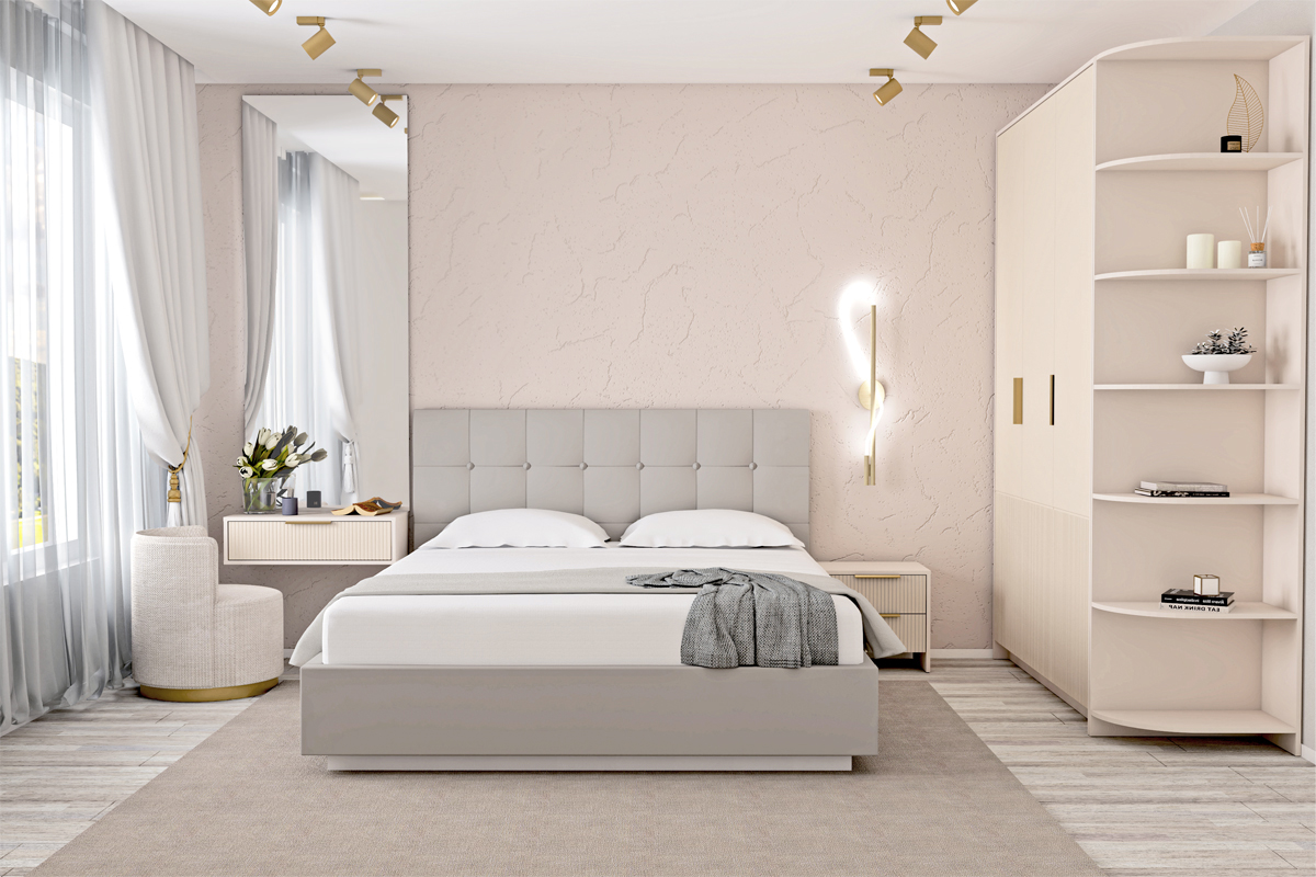 Открытые полки расширят возможности хранения в спальне,