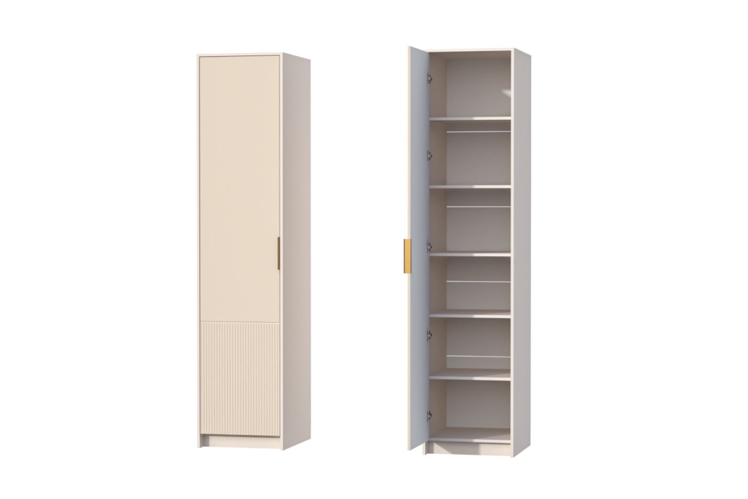 За распашной дверью - ниша с пятью вместительными полками.