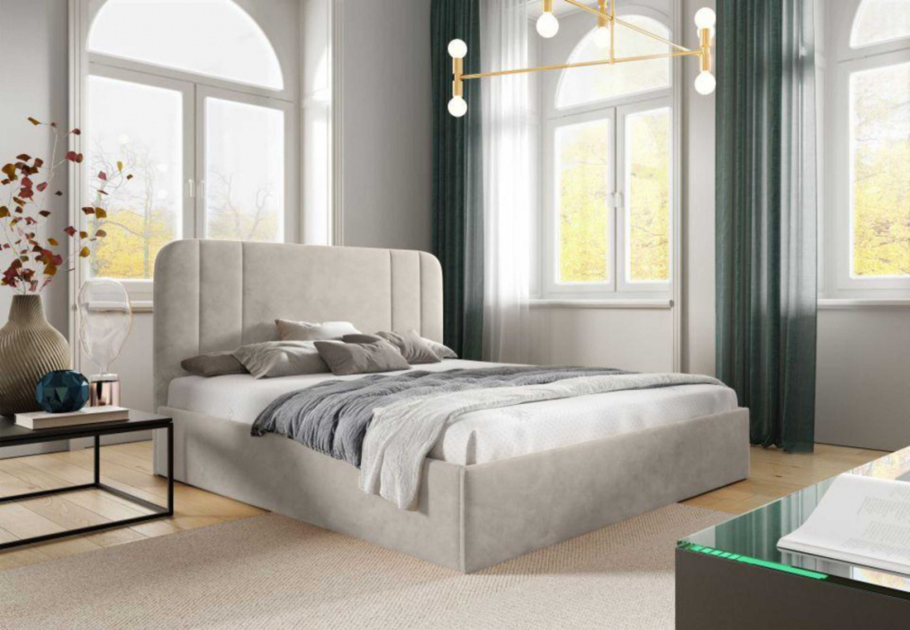 Кровать Терра в базовых тканях, с основанием и с подъемным механизмом, 160х200 (Бежевый Velure (Велюр)) Код I0000456014