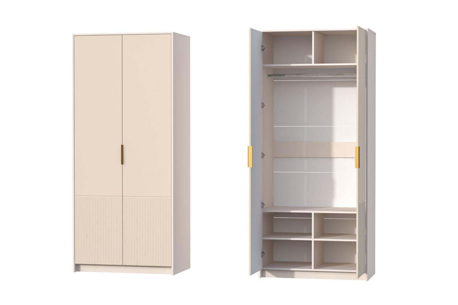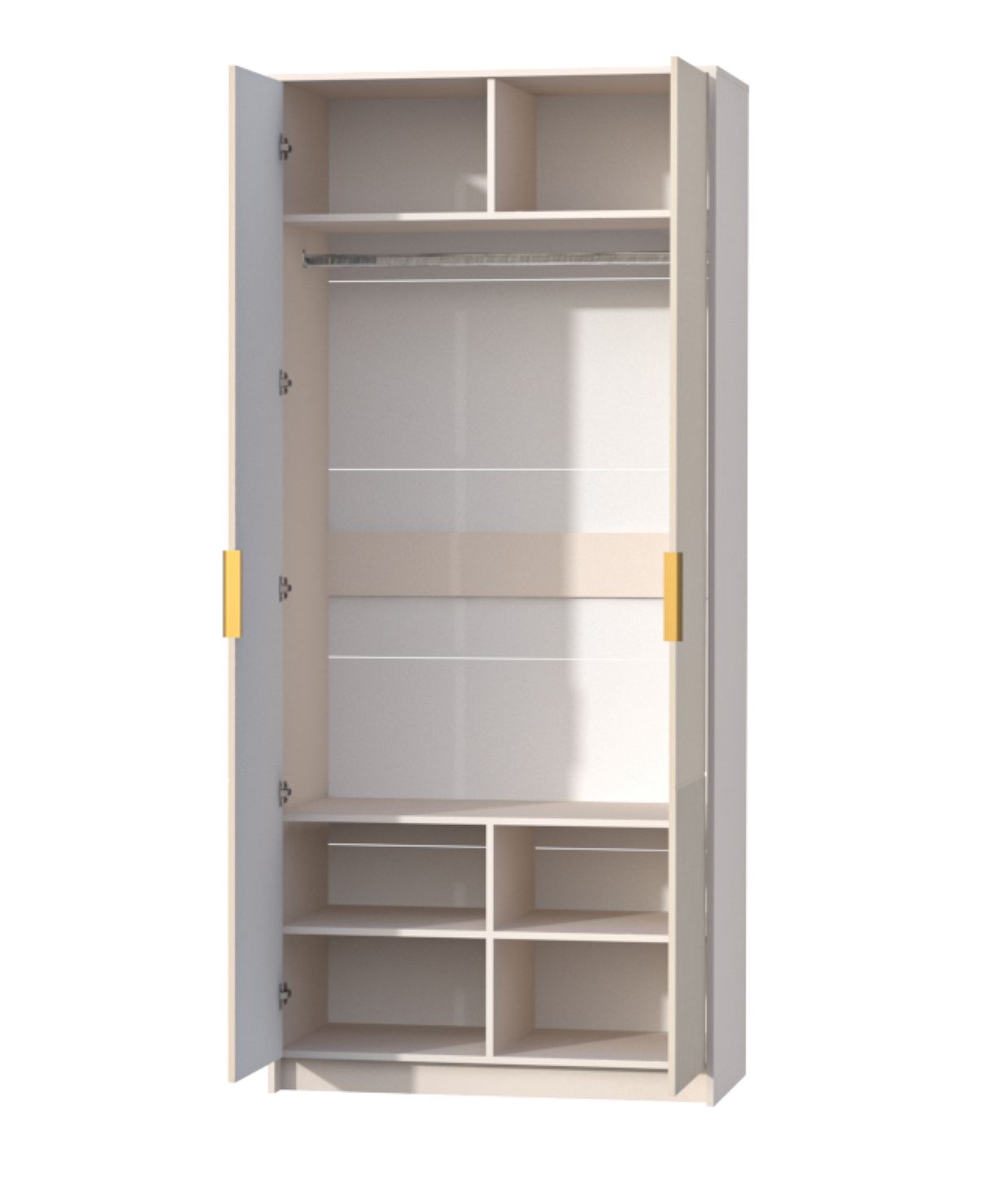 Внутреннее наполнение: вместительные полки и металлическая штанга для одежды.