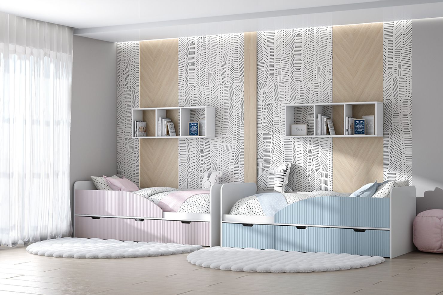 Полки навесные оживят и функционально дополнят интерьер детской.