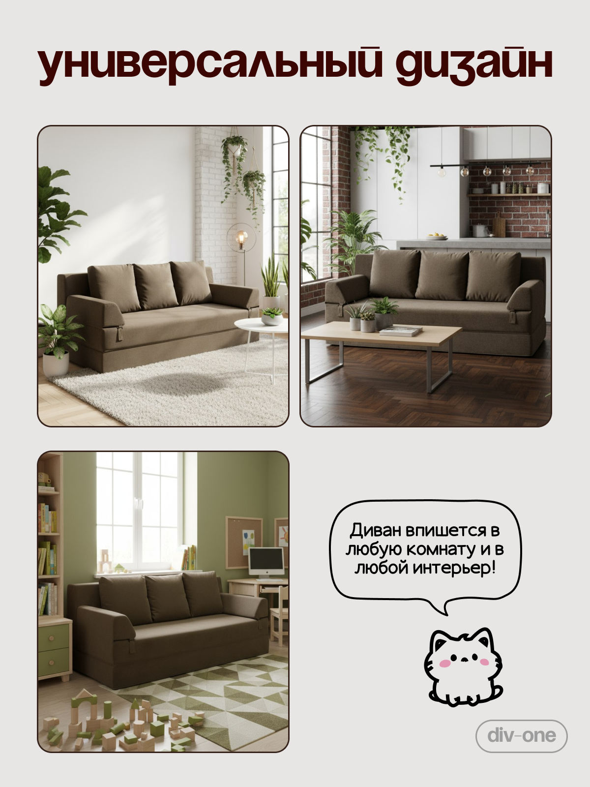 Экологически чистые материалы и продуманный дизайн позволят создать уютную атмосферу в комнате. Удобные съемные подушки обеспечивают дополнительный комфорт во время отдыха, а легкость конструкции позволяет без труда перемещать диван из комнаты в комнату. Книжка подходит не только для квартиры, но и для дачи. Стильный вид впишется в любой интерьер — от лофта до модерна.