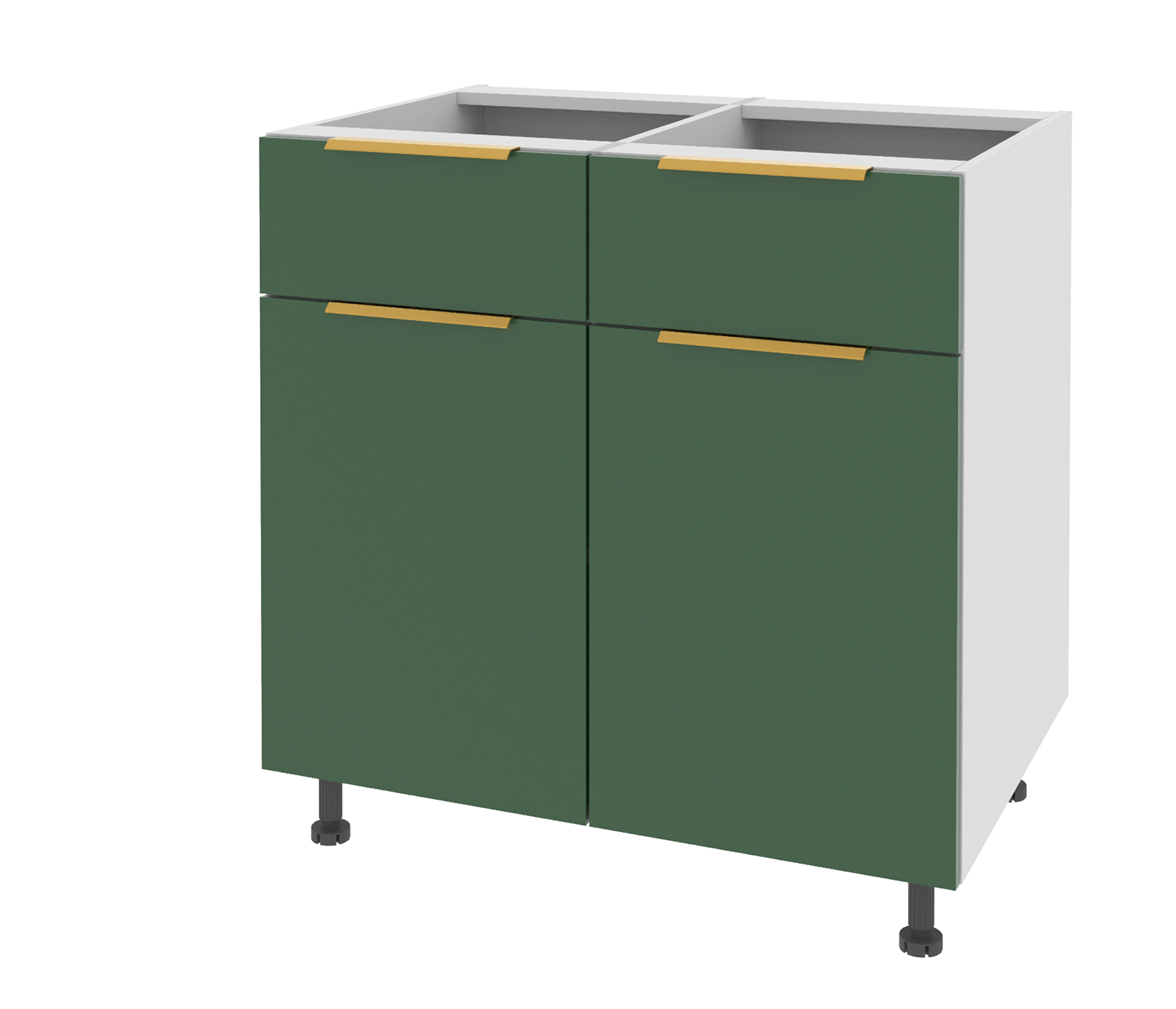 Продуманная система шкафов — навесных и напольных — позволяет организовать хранение так, как удобно именно вам. А четырехшарнирные петли с доводчиком обеспечивают мягкое и бесшумное закрывание дверок, добавляя ощущение уюта и плавности в каждый день.
