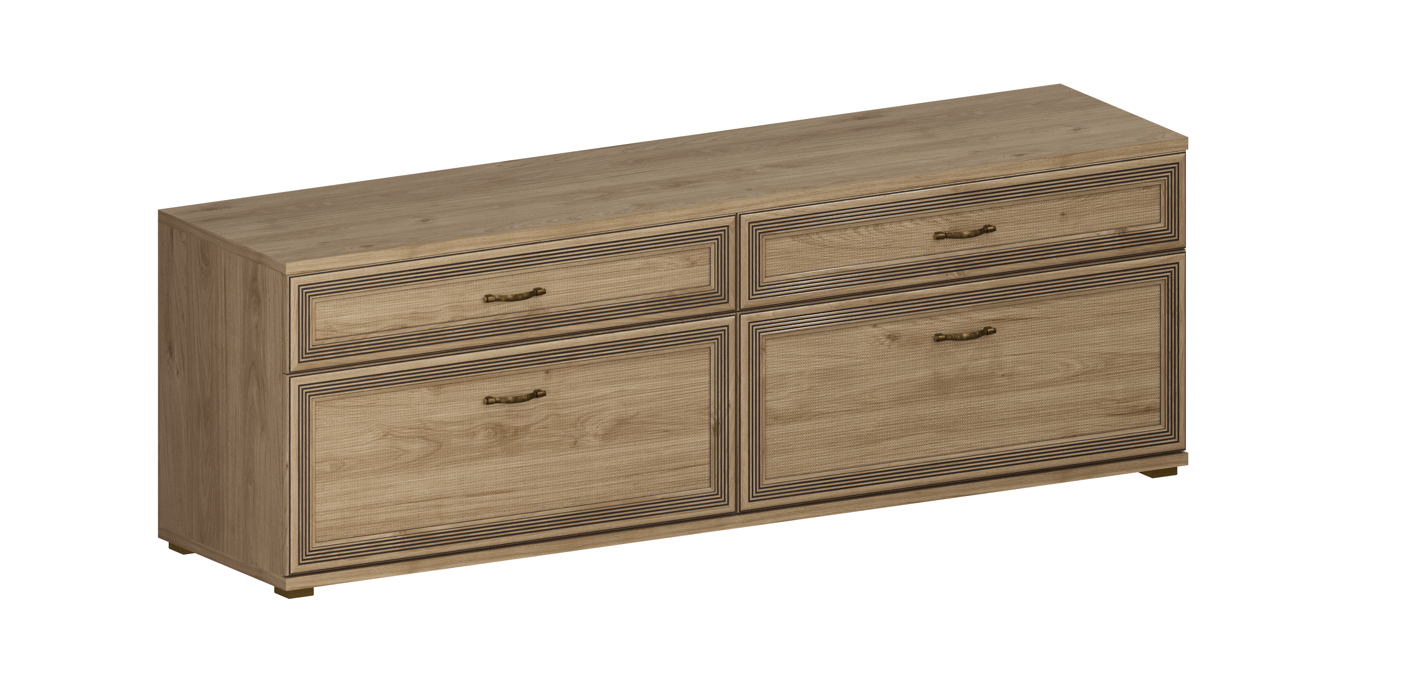 Корпусная мебель для гостиной "Карина" - это модульная мебель. Коллекция включает в себя более 70-ти оригинальных модулей, созданная с их помощью композиция отлично впишется в любое помещение. Программа «Карина» позволит создать уют и гармонию в гостиной. Фасад имеет уникальное сочетание глубокого тиснения и эффекта патины, присущей классическому стилю. Изящество фасада подчеркивает стекло с алмазной гравировкой и фацетом. Мебель изготавливается из высококачественных материалов: ЛДСП, МДФ (фасад) компании Egger имеют класс эмиссии Е1. Коллекция мебели комплектуется высококачественной европейской фурнитурой. Во всех выдвижных ящиках используются направляющие Quadro фирмы Hettich, которые обеспечат долгую превосходную функциональность. Встроенный демпфер Silent System позволяет закрывать ящик плавно и бесшумно. Скрытый монтаж делает механизм в нижней части ящика невидимым глазу, что позволяет не нарушать элегантный дизайн. Петли с доводчиками фирмы Titus обеспечивают бесшумное закрытие створки.