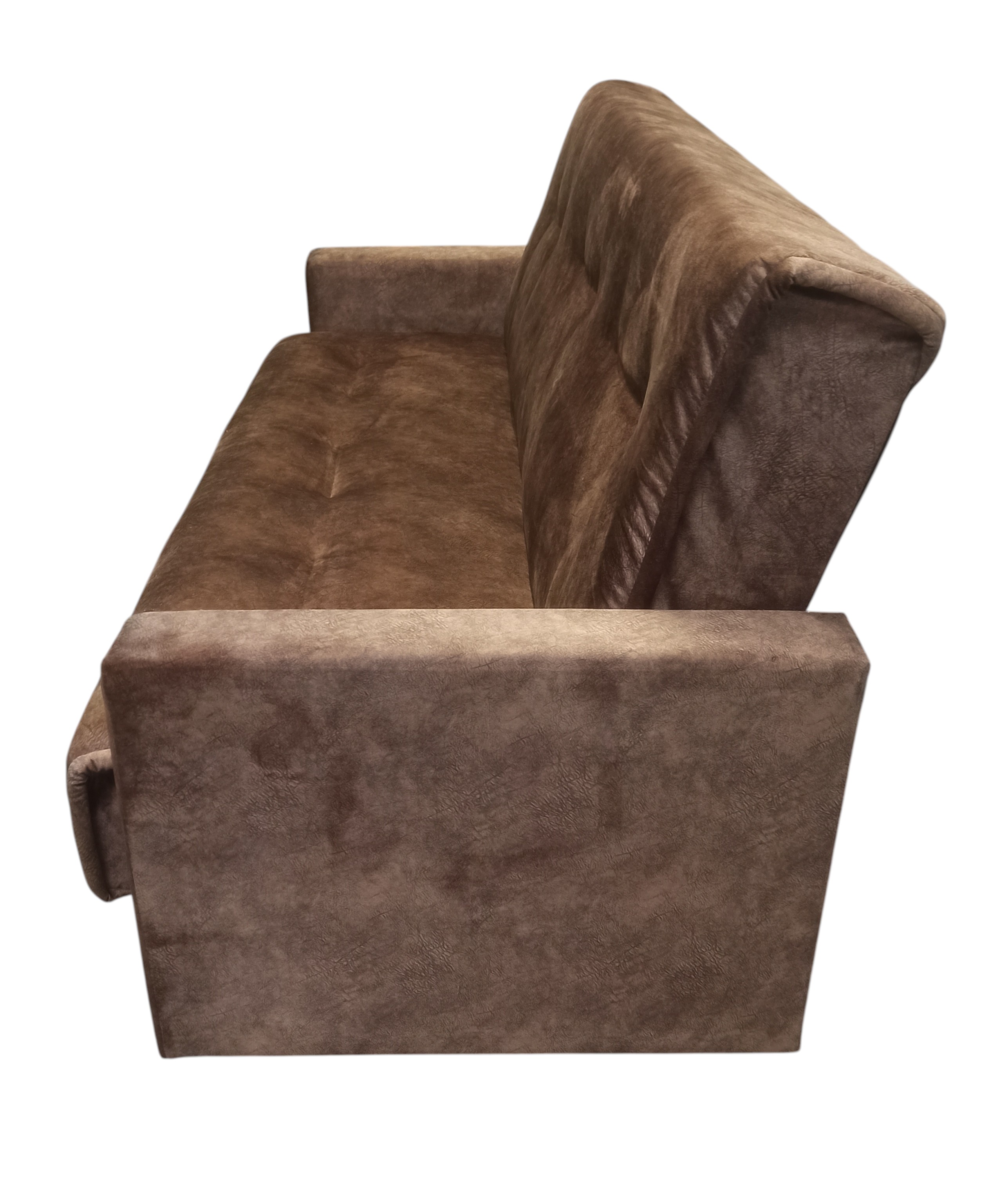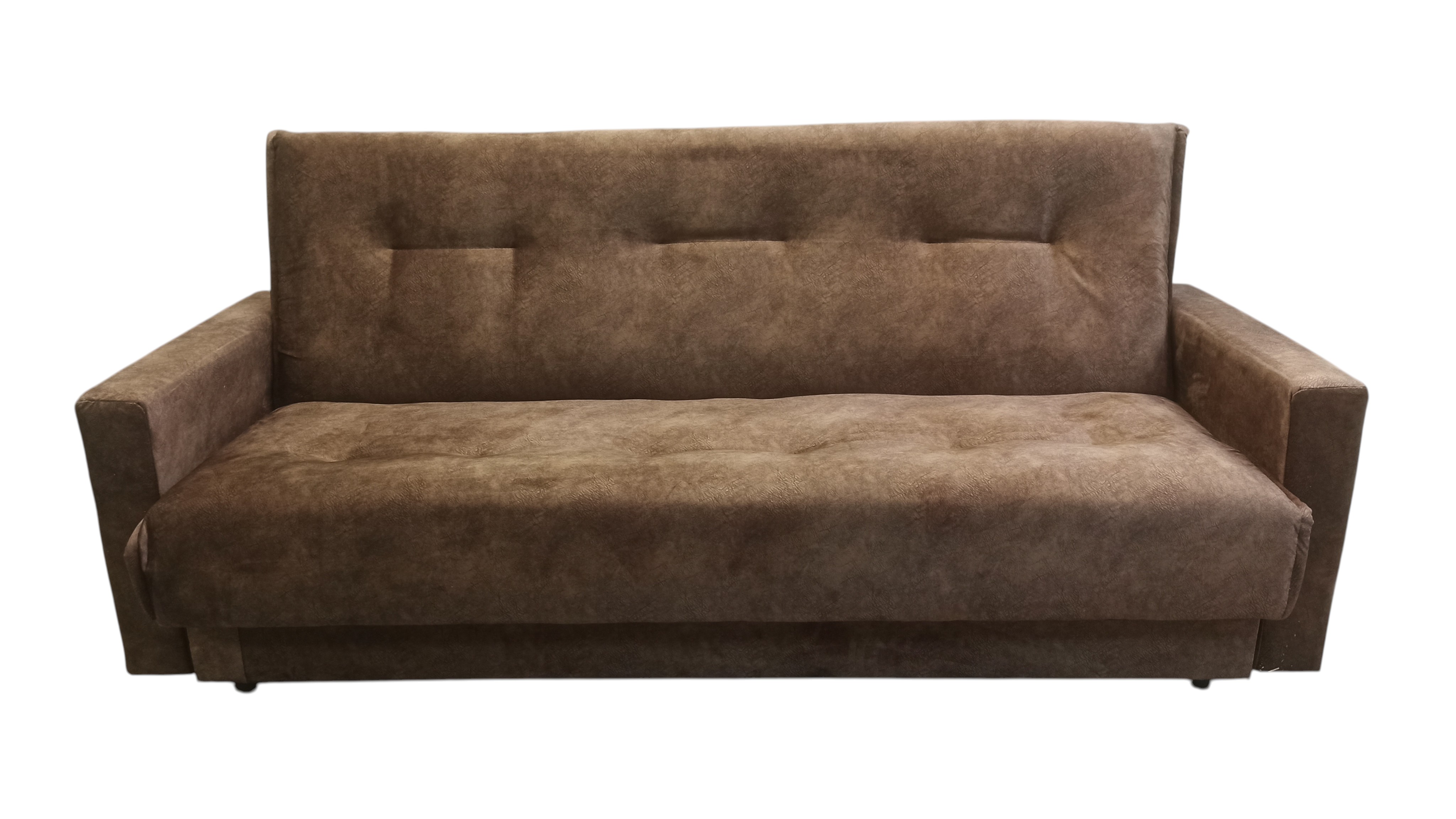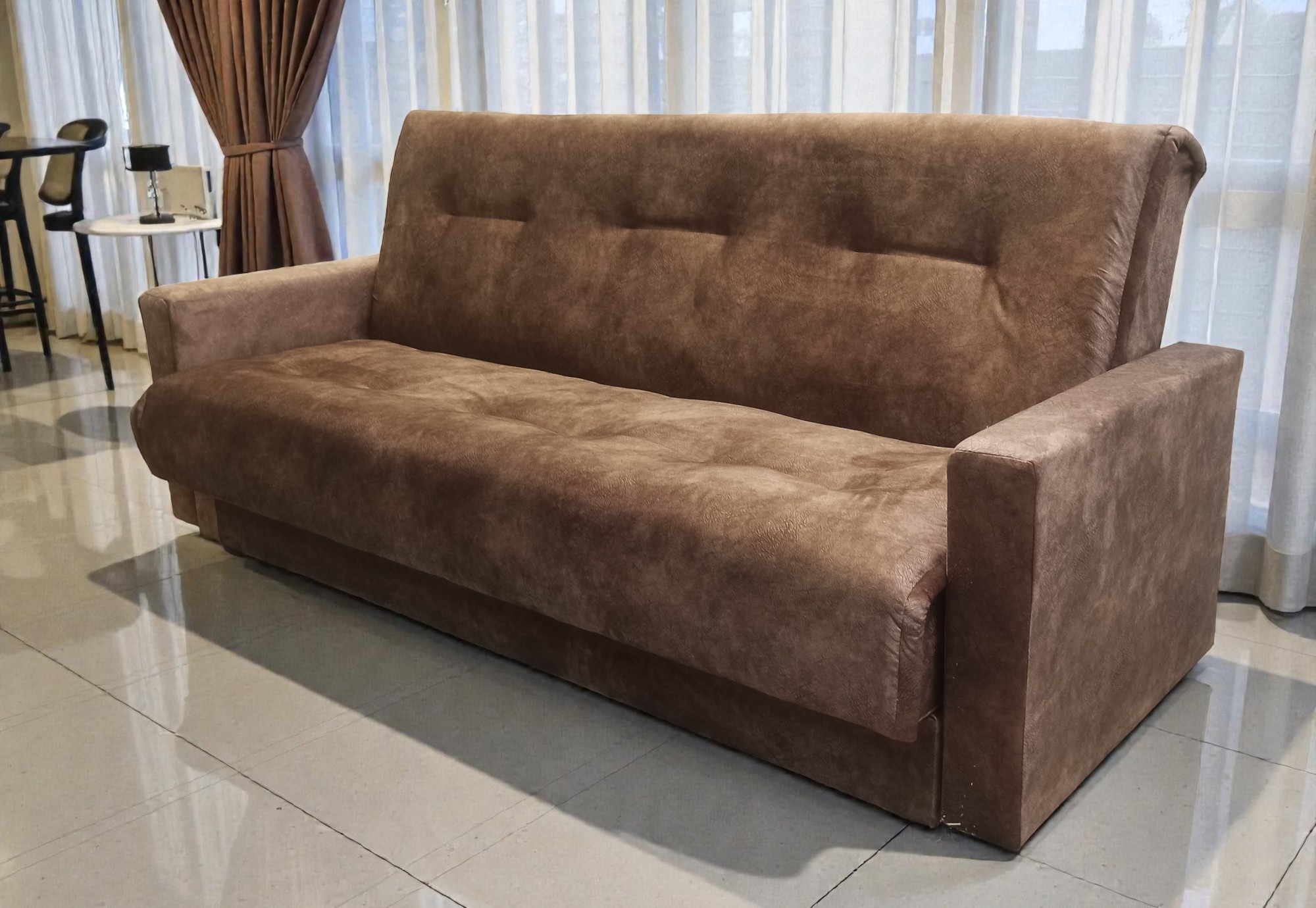 Диван имеет трансформацию раскладывания "Книжка". В положение спального места диван преобразуется путем откидывания спинки дивана назад. Сложить диван тоже не представит труда. Для этого нужно поднять переднюю часть сидения и наклонить ее вперед до щелчка пружины в механизме. Когда пружинный механизм сработает, части дивана зафиксируются в положении угла. После этого наклоняйте поднятое ранее сидение на себя.