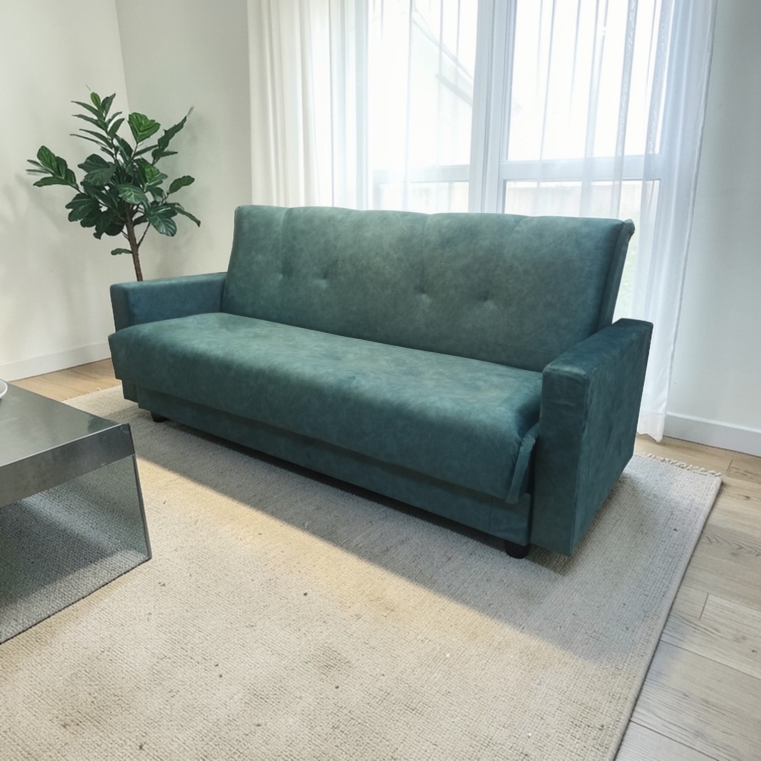 Диван имеет трансформацию раскладывания "Книжка". В положение спального места диван преобразуется путем откидывания спинки дивана назад. Сложить диван тоже не представит труда. Для этого нужно поднять переднюю часть сидения и наклонить ее вперед до щелчка пружины в механизме. Когда пружинный механизм сработает, части дивана зафиксируются в положении угла. После этого наклоняйте поднятое ранее сидение на себя.