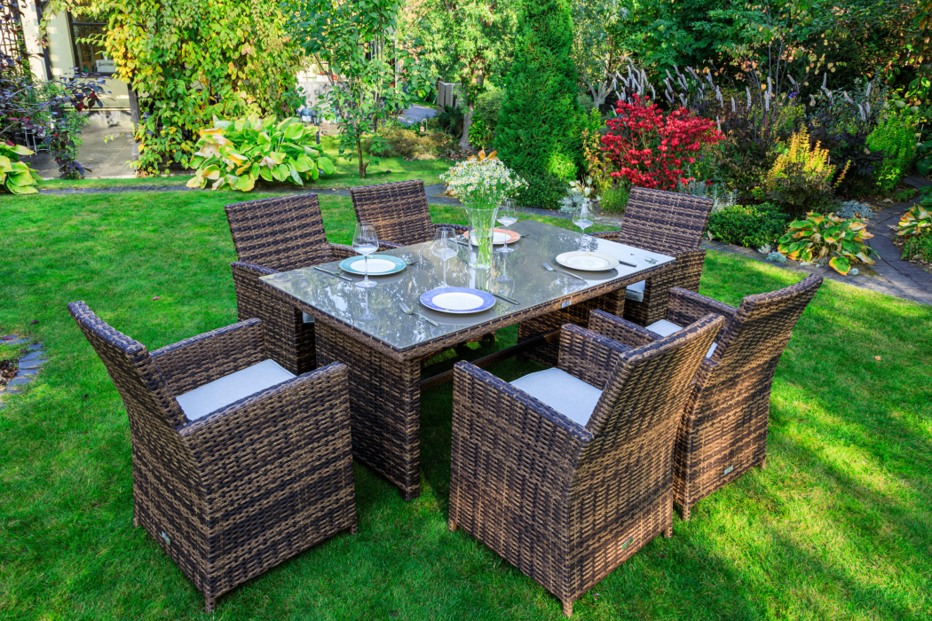 Премиальная мебель ручной работы в каждую семью! Обеденный комплект FIONA станет отличным решением для тех, кто предпочитает проводить летние вечера на улице в кругу друзей и семьи! Его габаритов вполне достаточно не только для ежедневных семейных трапез на свежем воздухе, но и праздничных застолий в больших компаниях. В основе каждого представленного в наборе предмета лежит прочный алюминиевый каркас, способный выдерживать высокие весовые и другие механические нагрузки без риска деформации и расшатывания. Алюминий не подвержен коррозии, благодаря чему мебель прослужит долго. В качестве декоративной отделки использовано плотное плетение из искусственного ротанга серого цвета – современного синтетического материала, который: точно имитирует фактуру натуральной тропической лианы; не подвержен гниению при контактах с водой; сохраняет свой цвет при постоянном активном воздействии солнечных лучей. Благодаря качественным и долговечным материалам обеденный комплект FIONA станет надежным спутником Вашей загородной жизни на долгие годы! В комплект входят: — 6 комфортабельных кресел с подлокотниками, высокими спинками и мягкими подушками; — большой обеденный стол со столешницей из закаленного стекла. Съемные чехлы для подушек серого цвета изготовлены из водоотталкивающей ткани, которая не подвержена изменению от погодных условий. Сдержанный современный дизайн и использование нейтральных серых оттенков — преимущества комплекта. Этот набор садовой мебели будет гармонично смотреться в любом окружении. Он подходит для установки на террасе или веранде, в летней беседке или под открытым небом на Вашем участке.