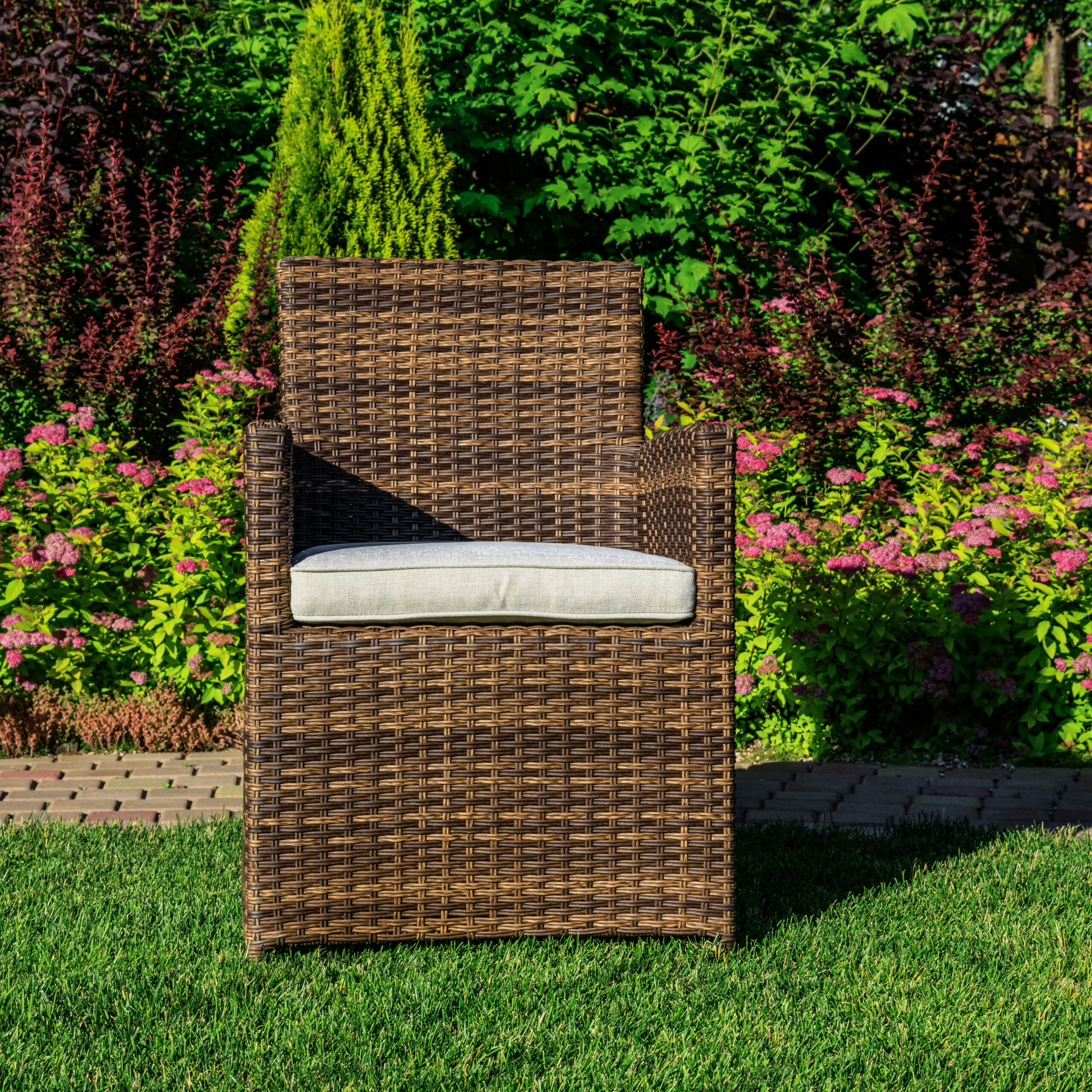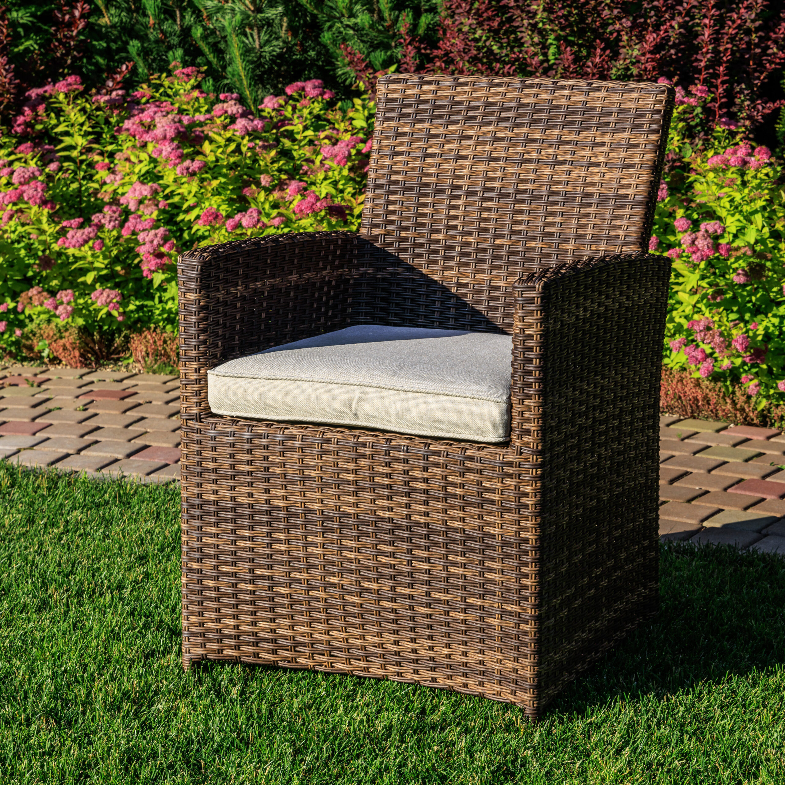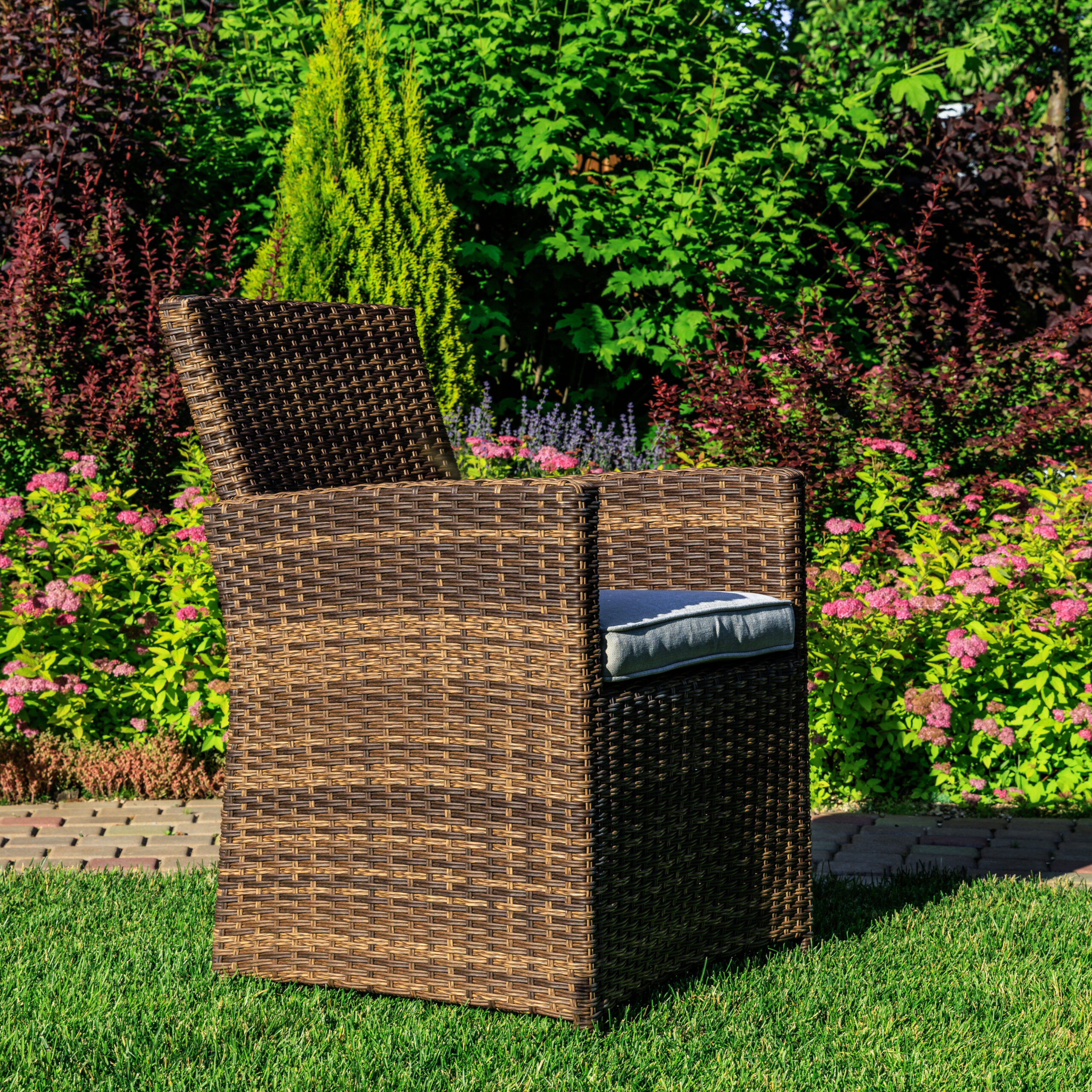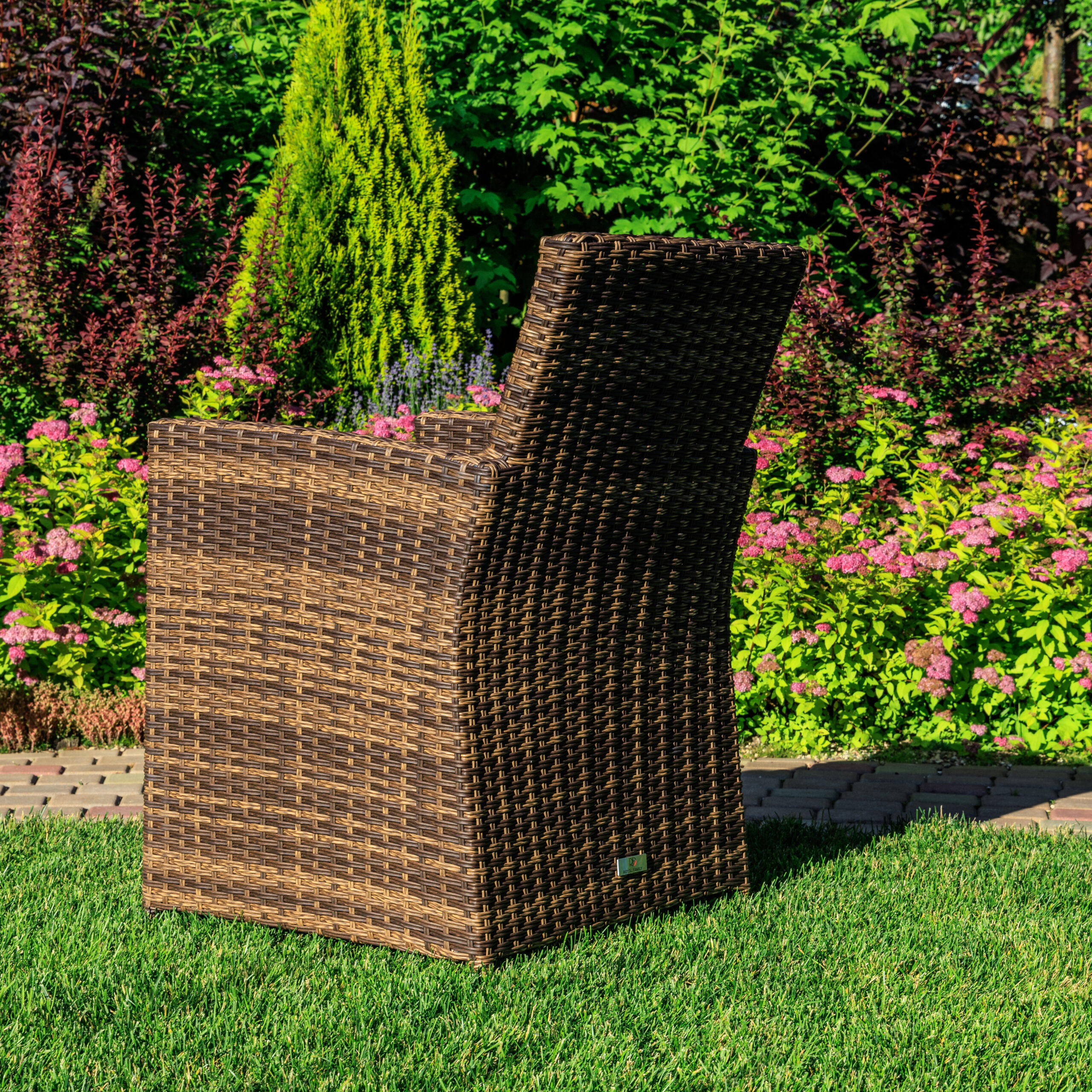Премиальная мебель ручной работы в каждую семью! Обеденное кресло FIONA из искусственного ротанга Обеденное кресло FIONA — станет идеальным решением в зоне отдыха, на садовом участке, в офисе или кафе! Благодаря современному дизайну и сдержанным коричневым оттенкам кресло прекрасно впишется в любой интерьер. Каркас из алюминия способен выдерживать высокие весовые и другие механические нагрузки без риска деформации и расшатывания. Благодаря алюминиевому каркасу его легко перемещать на дачном участке, веранде или террасе. Алюминий не подвержен коррозии, поэтому кресло будет радовать вас долгие годы. В качестве декоративной отделки использовано плотное плетение искусственного ротанга коричневого цвета, не подверженного гниению при контактах с водой и сохраняющего цвет при постоянном воздействии солнечных лучей. Кресло дополнено дополнен мягкими подушками бежевого цвета с чехлами из водонепроницаемой ткани Olefin, что обеспечивает еще больший комфорт и удовольствие Кресло имеет одно посадочное место, допустимая нагрузка на которое 150 кг. Сочетается с комплектами FIONA, GRAND VICKY, ZORRO, ZOYA, KARL, VIOLETTA.