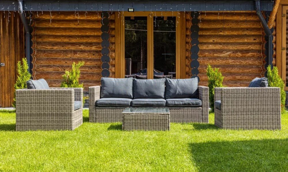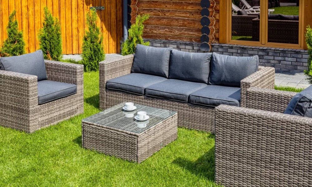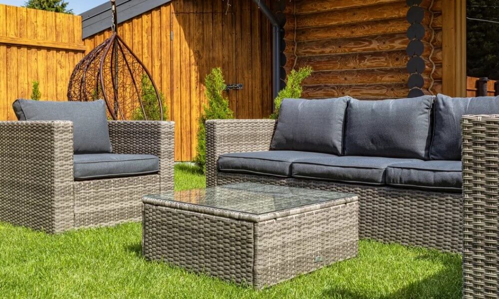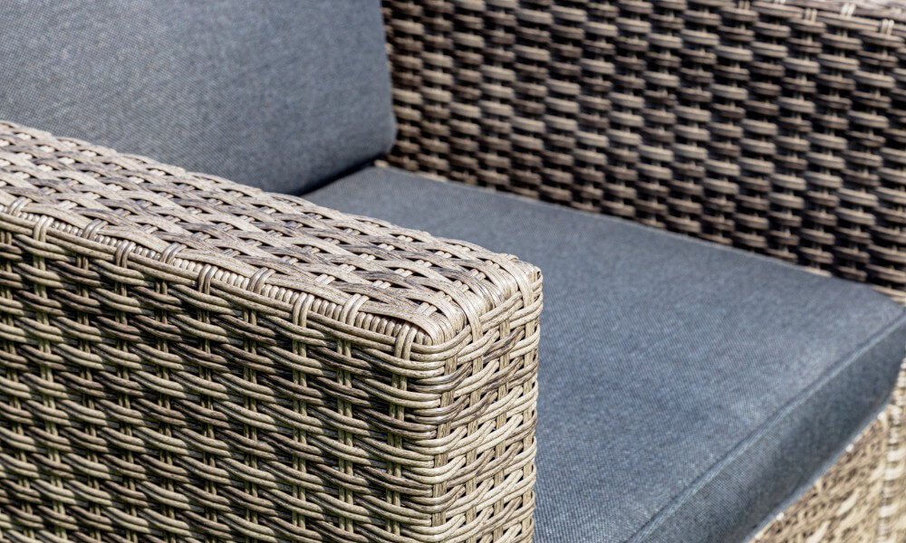 Материал комплекта - искусственный ротанг (ручного плетения)