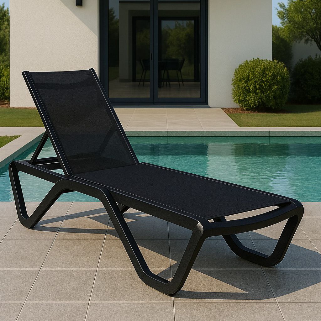 Материал шезлонга - текстилен Цвет шезлонга - черный
