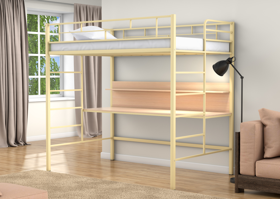 Кровать-чердак Амстердам 120 Слоновая кость от Фабрики мебели 4 Сезона. Каркас выполнен из прочного металла, покрытого порошковой краской. Основание под матрас сварное, ламели металлические профиль 30х15 мм. Выдерживает нагрузку до 150 кг. Ножки кровати имеют пластиковые заглушки. Лестницы сварные, расположены с обеих сторон с торцов кровати. В комплект входит рабочая зона из ЛДСП 16 мм, крепится к основанию кровати. Рабочая поверхность стола 55х190 см, полка 15х190 см. В нашем ассортименте представлен большой выбор матрасов собственного производства из высококачественных материалов по низким ценам.
