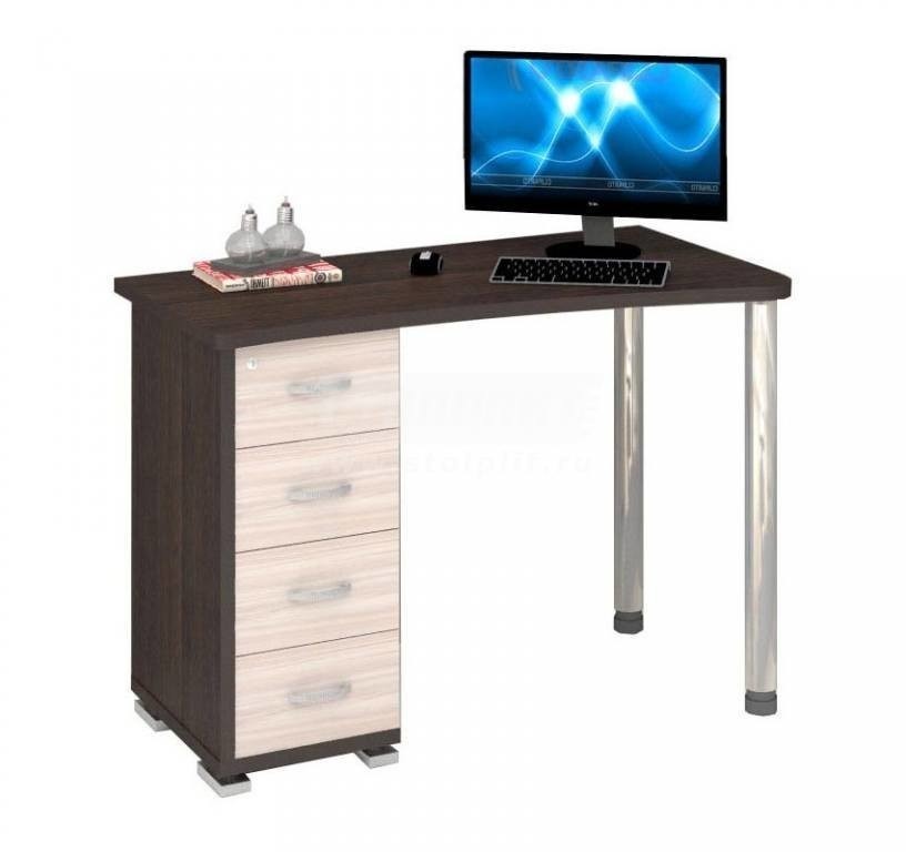 Компактный письменный стол с тумбой (4 ящика). Верхний ящик оборудован замком. Стол может иметь правое или левое исполнение (определяется по расположению угла). Изделие изготовлено из высококачественного ламинированного ДСП российского производства толщиной 16мм и кромкой ПВХ толщиной 2мм.Высота — 765 мм.Ширина — 1100 мм.Глубина — 620 мм.Форма поставки — В разобранном видеВес изделия в упаковке:34 кгКоличество упаковок:2 шт.¶Страна производства:РоссияГарантия:12 месяцев
