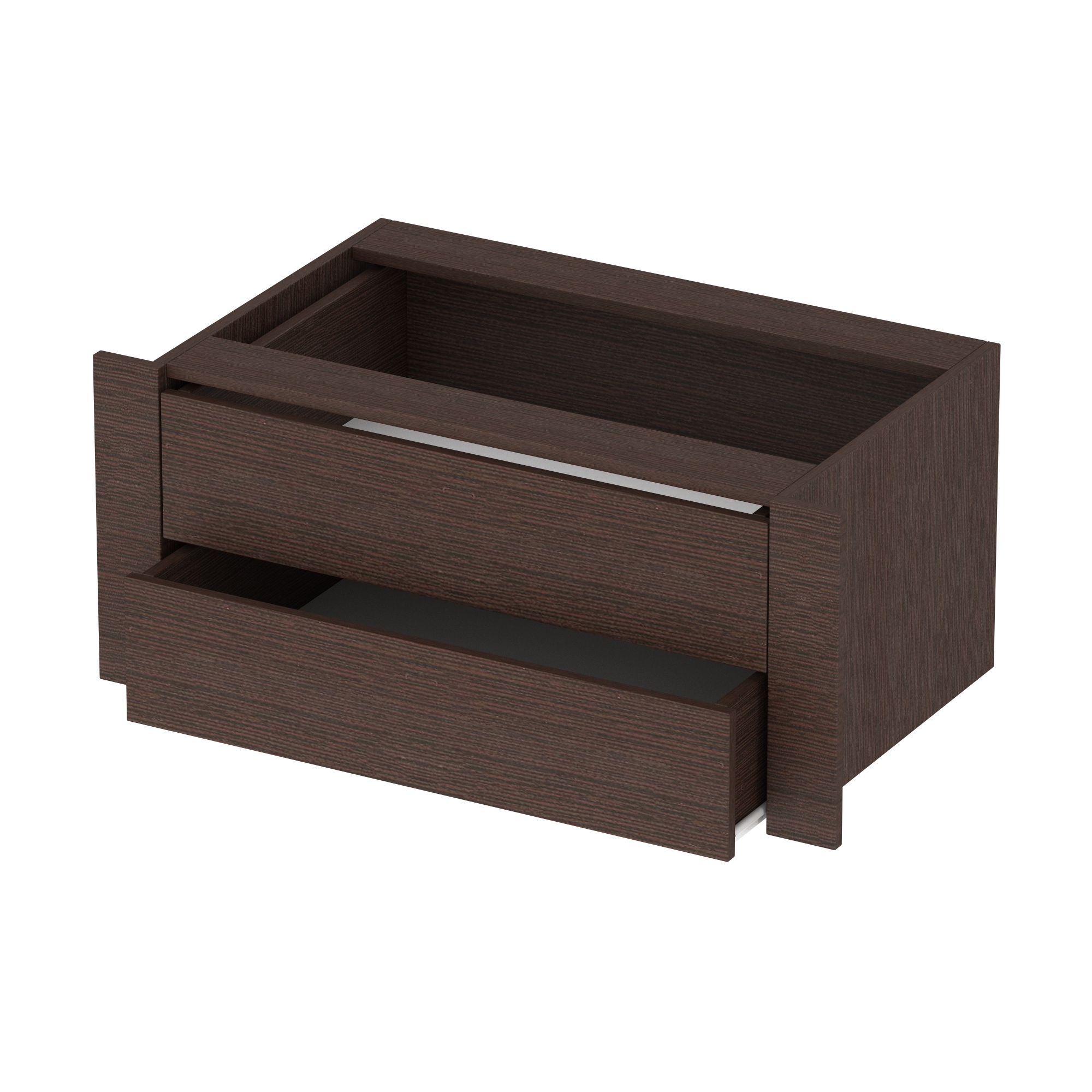 Ширина по фасаду 700 мм Модуль изготовлен из ламинированного ДСП. Он идет в виде куба, внутри которого два выдвижных ящика. Модуль ставится на любую полку и прикрепляется к ней. Ящики двигаются по металлическим направляющим. Направляющие работают бесшумно и плавно, надежны и долговечны.
