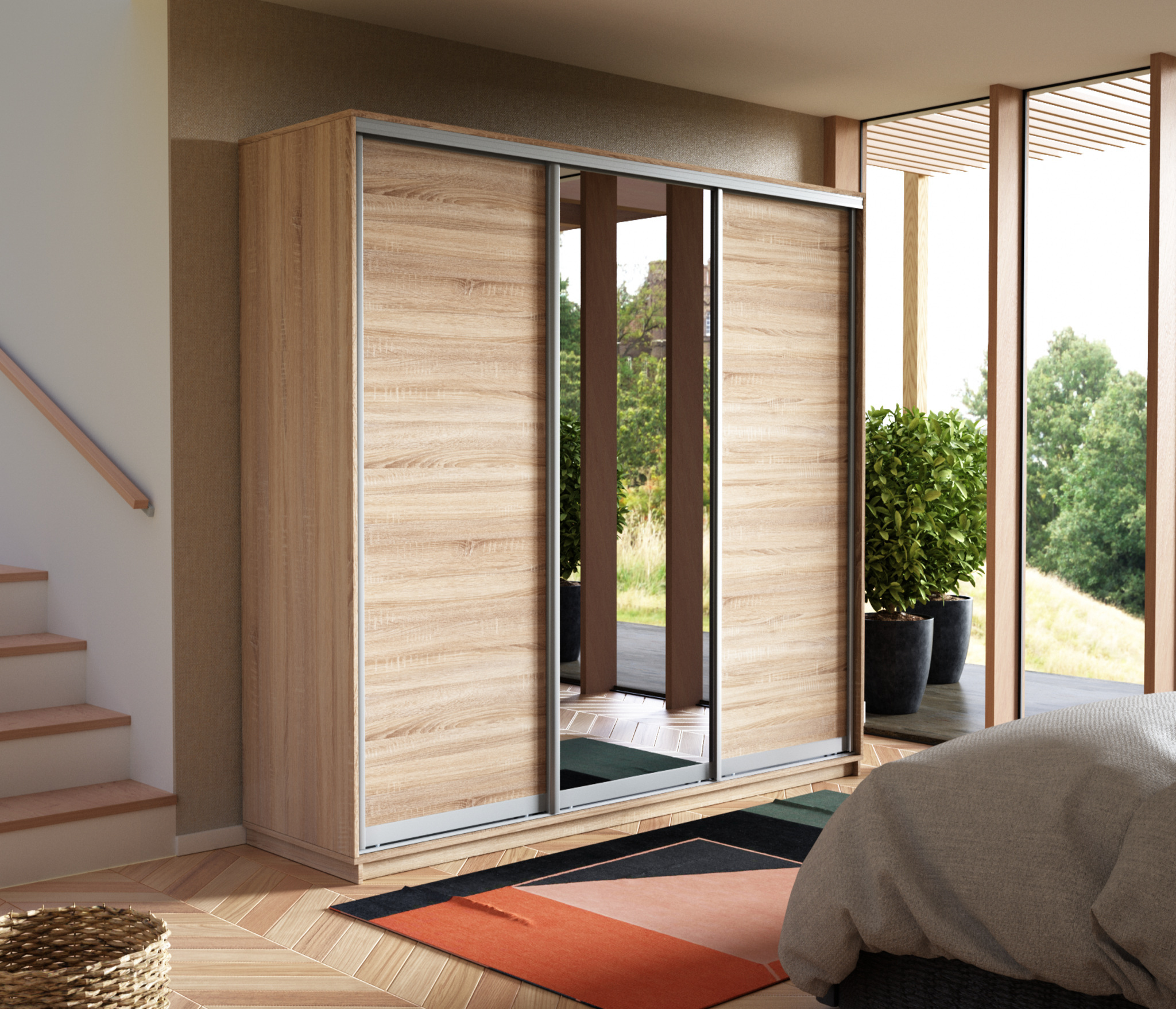 Шкаф-купе Экспресс Медиум (1 зеркало) трио 2400 x 2100 x 600 (Дуб Сонома)