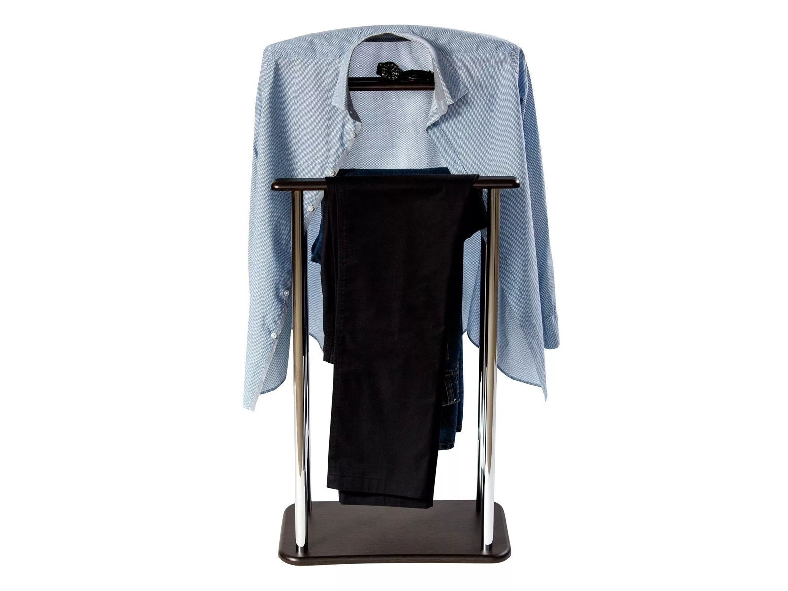 Благодаря наличию двух планок для брюк и полочки для аксессуаров- данный вариант вешалки костюмной отлично подойдет для аккуратного хранения вещей.