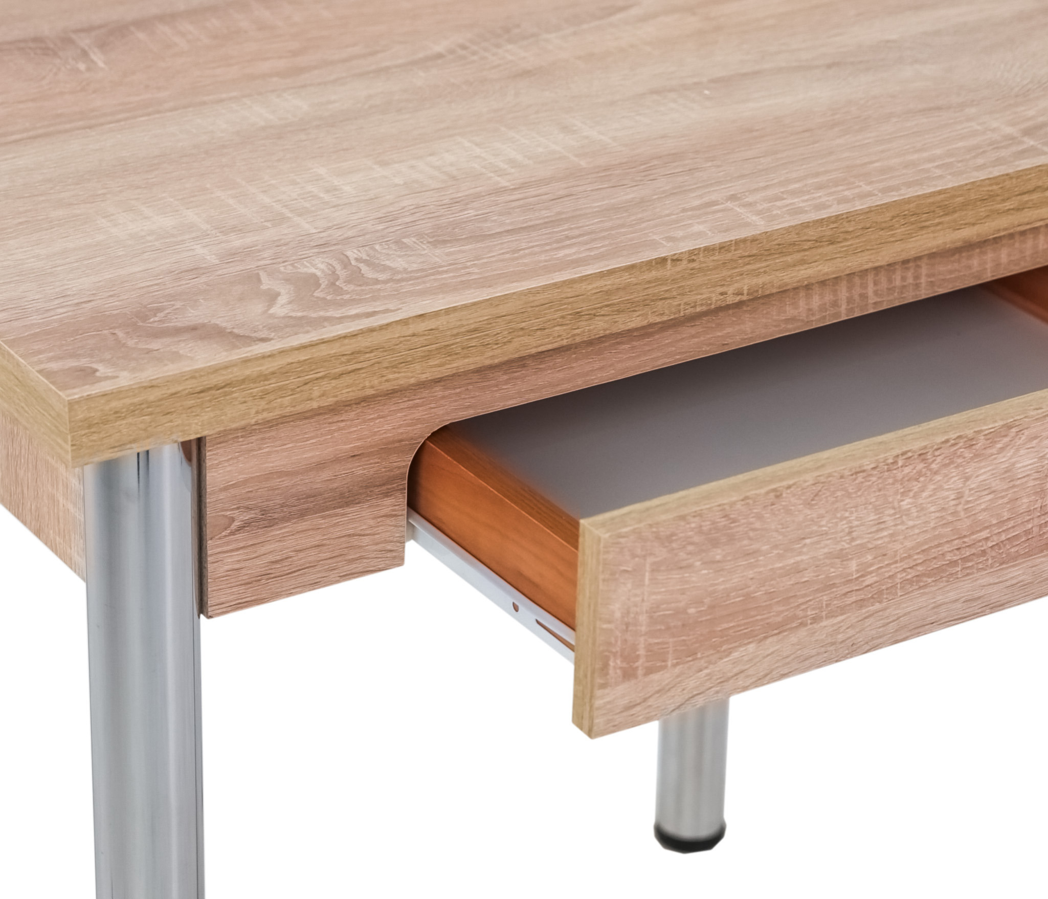 Хороший стол за свои деньги. Достаточно удобный по высоте и размерам столешницы. Можно раскладывать, есть выдвижной ящик примерно 30х30х5 см.