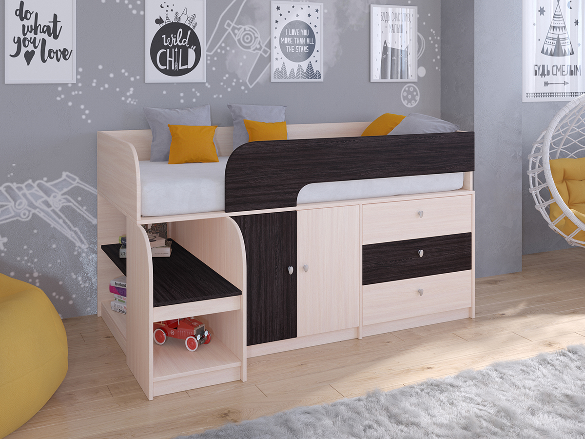 Кровать-чердак Астра 9 V1 Дуб молочный (Венге)