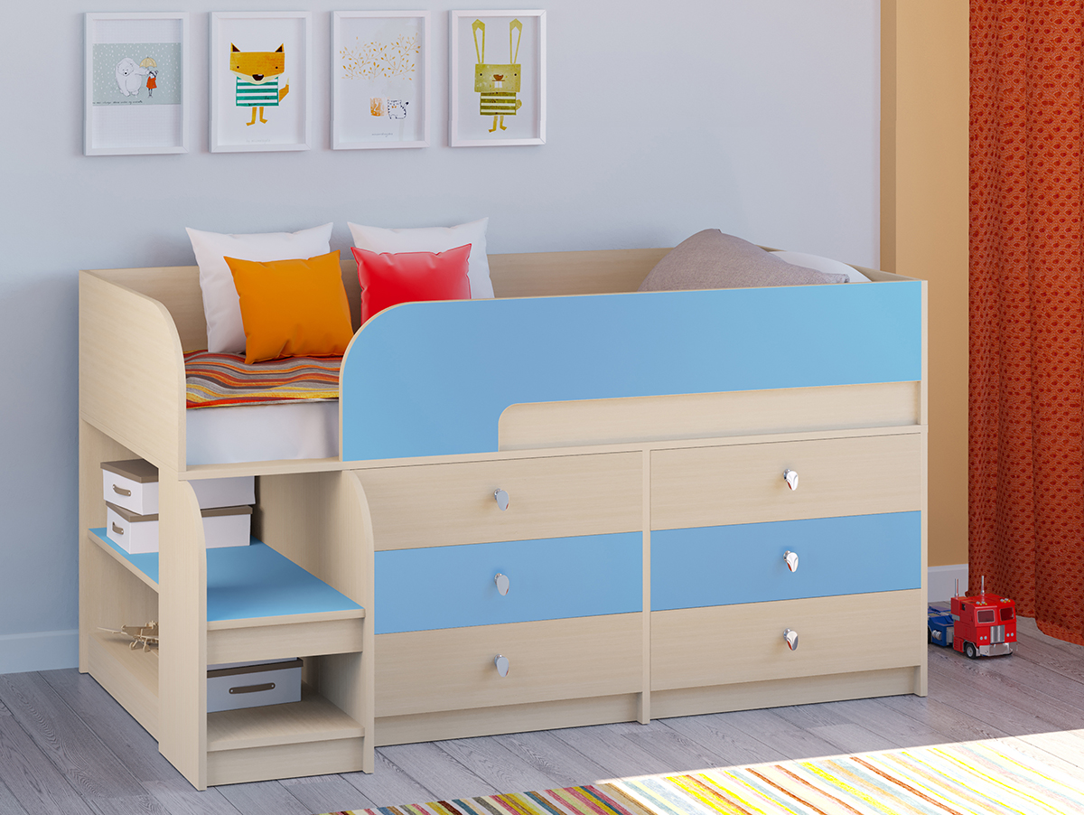 Кровать-чердак Астра 9 превосходно подойдет для детей раннего возраста. Компактная конструкция кровати позволяет сэкономить место в комнате и в то же время хранить массу необходимых вещей. Шесть вместительных ящиков отлично подойдут для хранения детских принадлежностей, одежды или книг. На двух больших полках, переходящих в лестницу, ребенок может "выставлять напоказ" свои игрушки или творческие поделки.