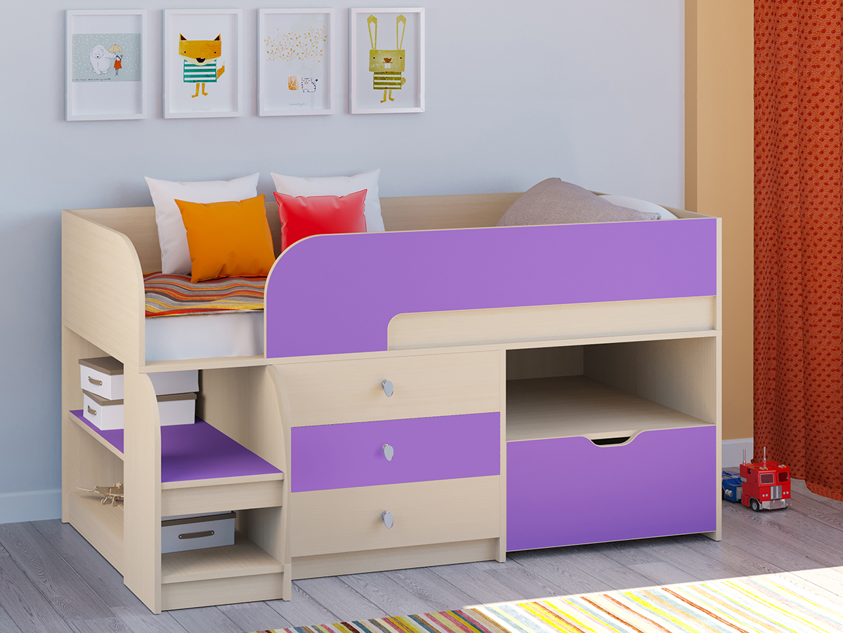 Отзывы о Столплит Кровать-чердак Астра 9 V5 Дуб молочный Дуб молочный/Фиолетовый