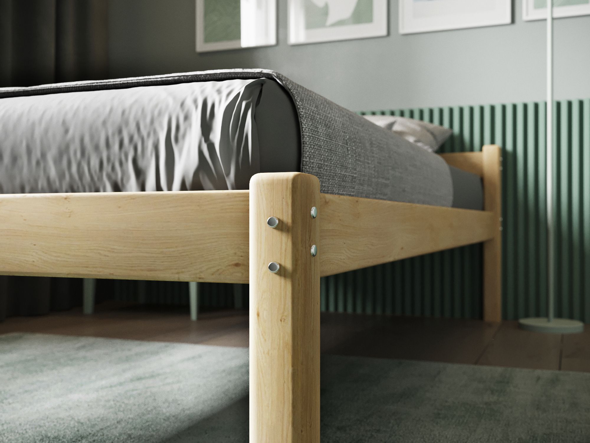 Деревянная односпальная кровать из массива сосны - крепкая и доступная. Собирается всего одним ключом, хорошо отшлифована.