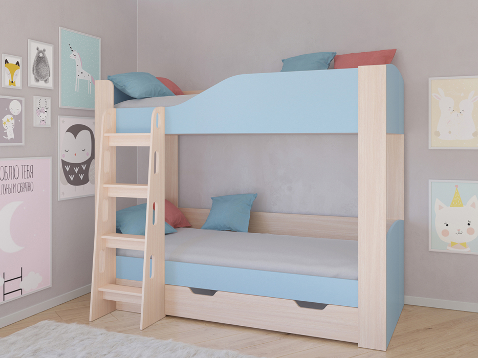 Кровать двухъярусная Астра 2 Дуб молочный (Голубой)