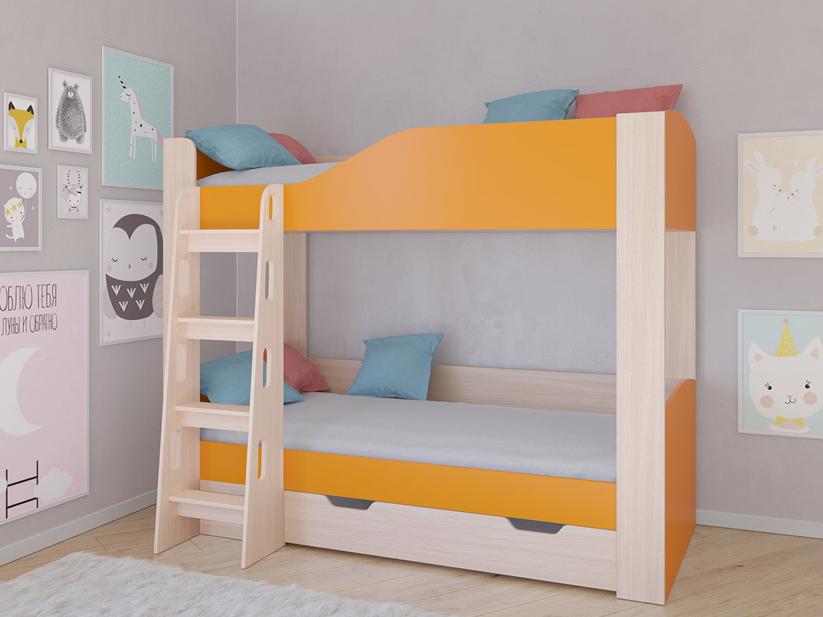 Отзывы о Столплит Кровать двухъярусная Астра 2 Дуб молочный Оранжевый