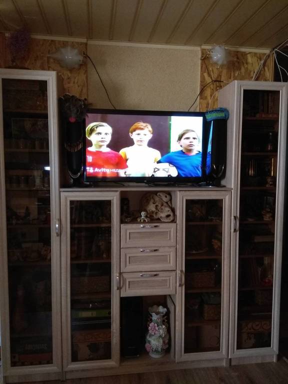 2. Задняя стенка видимая через стеклянную дверцу из неотделанного ДВП.