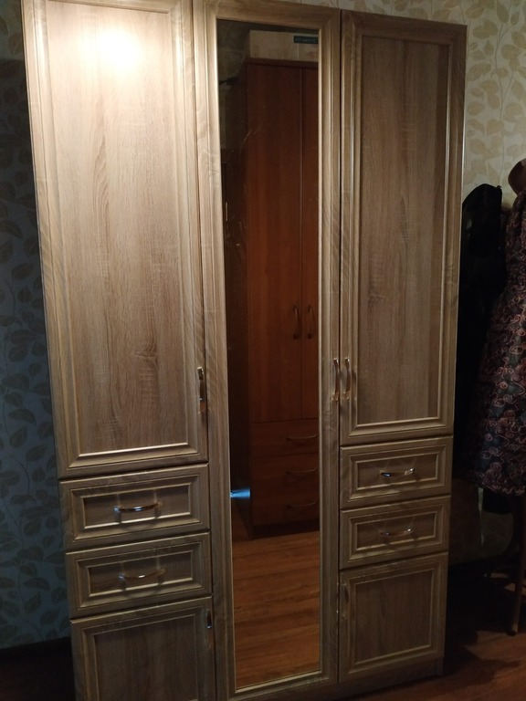 Некоторые отзывы упоминали, что зеркало сзади не уплотнено ничем. Но вообще , если драк дома нет, я не думаю что оно как-то может выпасть. Крепежи дверей не дают хлопать дверям тк идет легкий щелчок и блок на расстоянии 20 см до смыкания со шкафом. Поэтому дверь практически не хлопает, если ее бросить. Нам предлагали поставить другие крепежи у дверей, но я лично и этими довольна. Но каждому свое, все люди разные. Зеркало чуток при протирании на 2мм отклонялось. Я позади просто проложила 9 картонок от упаковки от колготок 1 на 8 см. двойным слоем по краям внутрь и поэтмоу стало все ок. Но можно протирать было и с этим минимальным отклонением в месте надавливания, зеркалу это не вредит никак. Еще момент, что в реальной схеме шкафа производителя на одну полочку меньше. Видно на 3 фото как в реальности. Но по факту эта полочка там лишняя тк рукава длинных кофт иначе бы стелились прям по ней. Есть дырочки для тех, кто захочет добавить полочки.