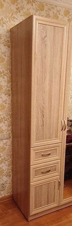 Отличный шкаф, глубокий и вместительный. Фурнитура очень радует. Никаких нареканий по качеству и доставки нет.