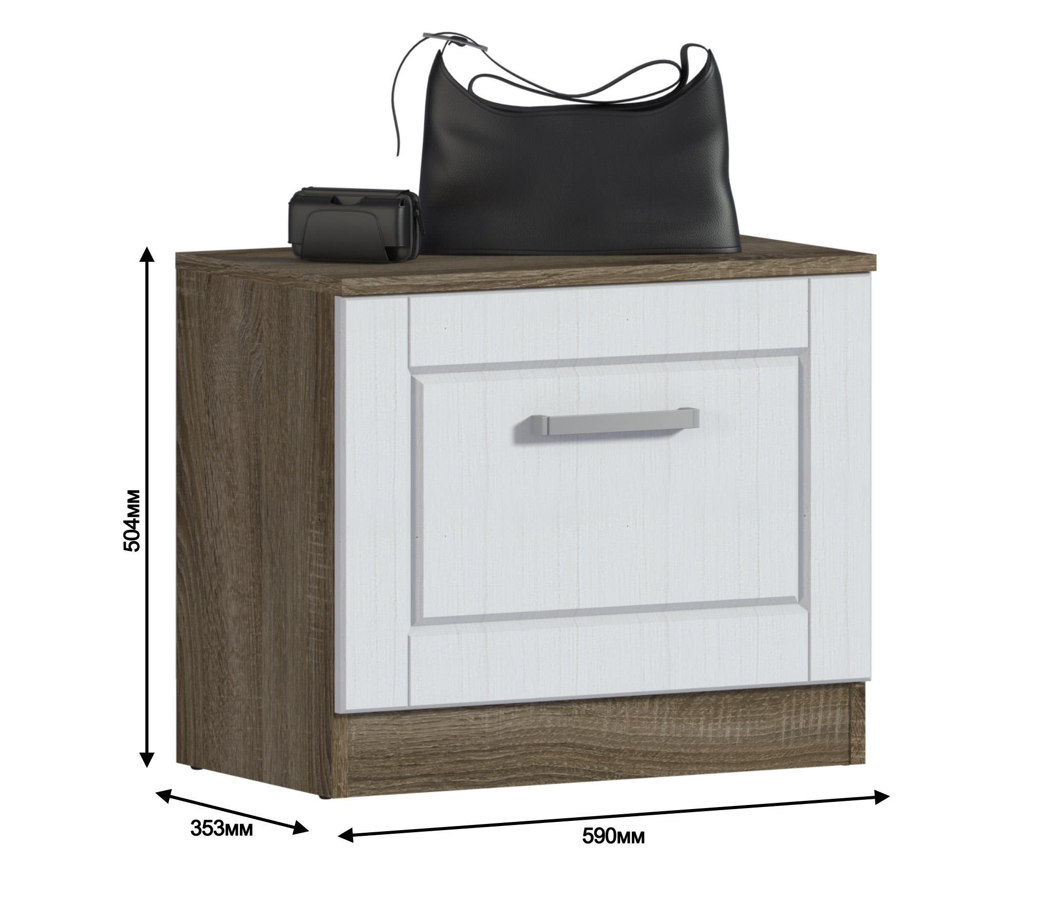 Тумба Илона СБ-2635 предназначена для хранения обуви, оптимальна для прихожей небольшой площади. Может быть элементом гарнитура Илона.Несмотря на компактные габаритные размеры – ширина 59 см, высота 50 см, глубина 33 см и небольшой вес 12,67 кг, тумба довольно вместительная. Имеет одно отделение с отдельной дверцей.