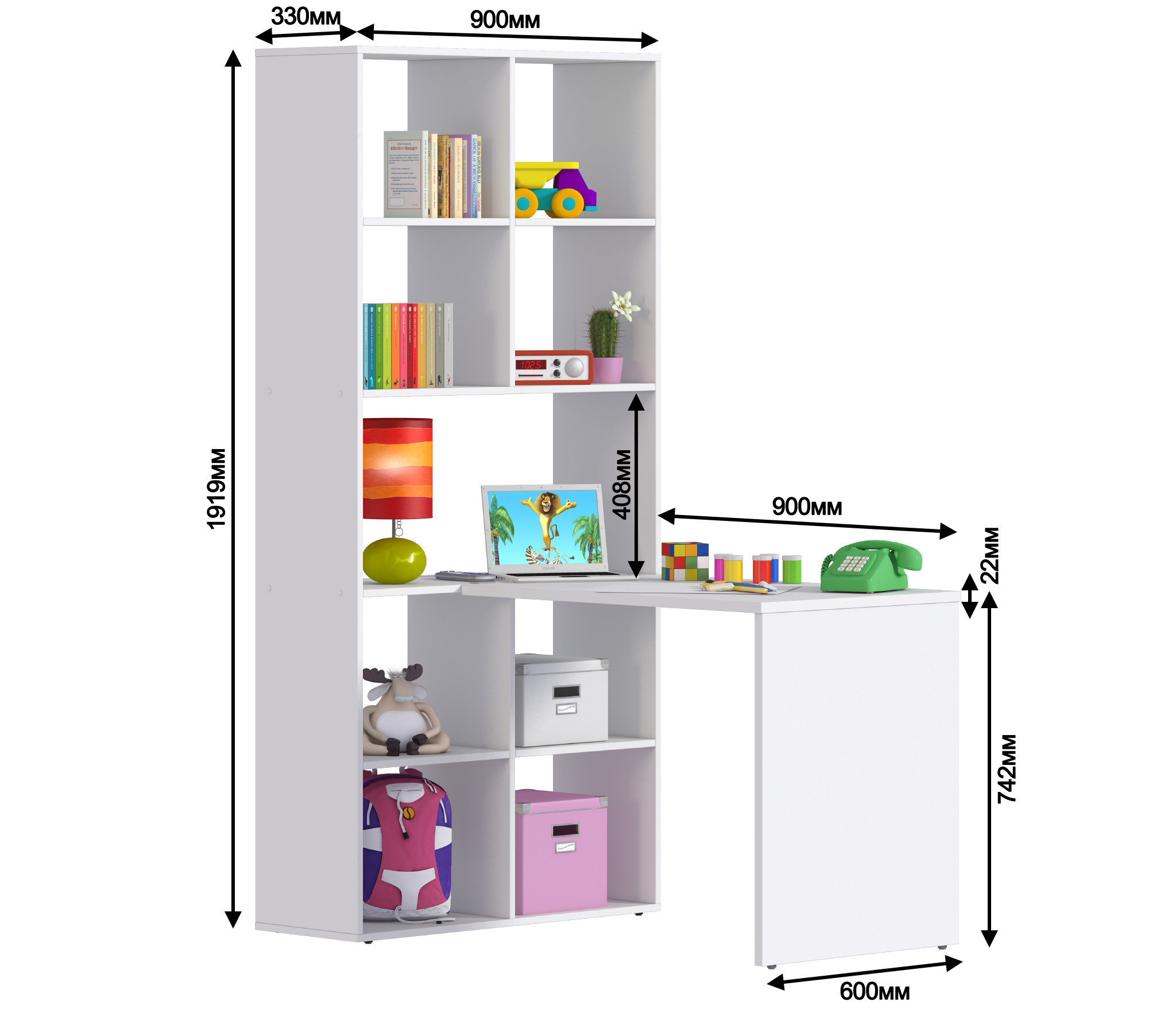 Приобрели для детской этот стеллаж, такую же белую кровать и комод. Все очень хорошо вписалось в детскую. 20мм столешница смотрится достаточно хорошо и крепление к самому стеллажу позволяет сделать четыре варианта крепления (ближе-дальше и с двух сторон, т.к. столешница симметричная). Боялся, что при сборке стеллаж будет хлипким, т.к. нет задней стенки и нет диагональных распорок. Но нет. Все очень достойно. Единственное - хочу защитить поверхность стола пластиковой прозрачной накладкой. Буду заказывать у рекламщиков, чтобы закрыть весь стол (учитывая любовь моей дочери к краскам и пластилину). Белый цвет ооочень хорошо смотрится в дизайне нашей детской.