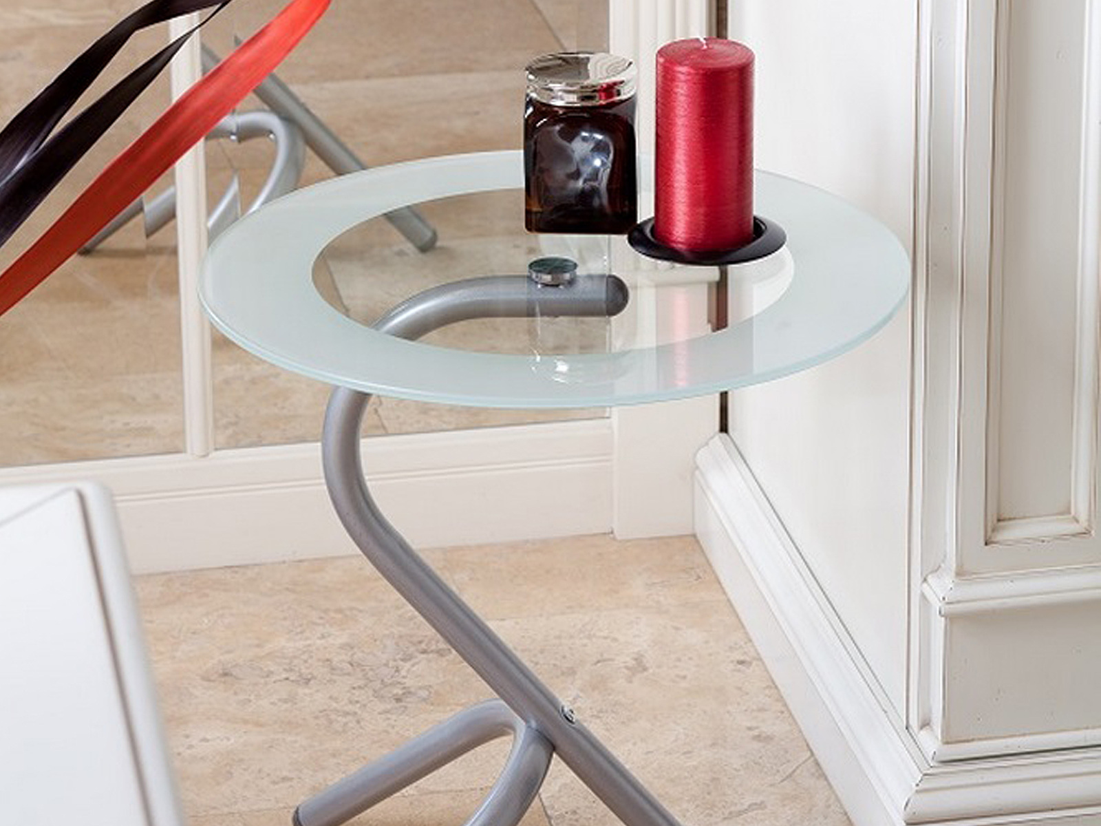 Изящный столик с небольшой круглой столешницей в современный интерьер офиса, гостиной;