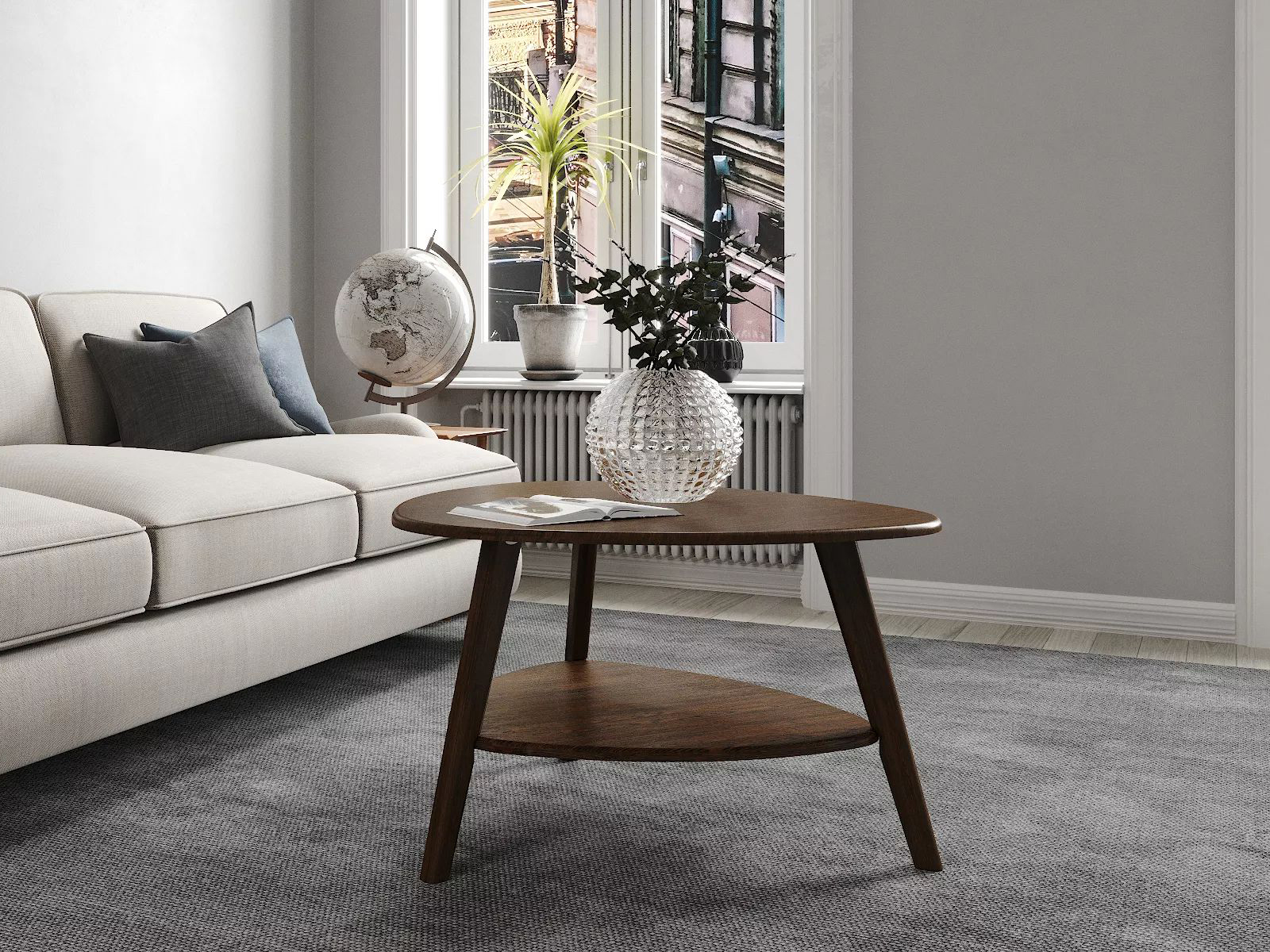 Журнальный столик выгодно отличается благородством и в целом придает помещению особый шарм.