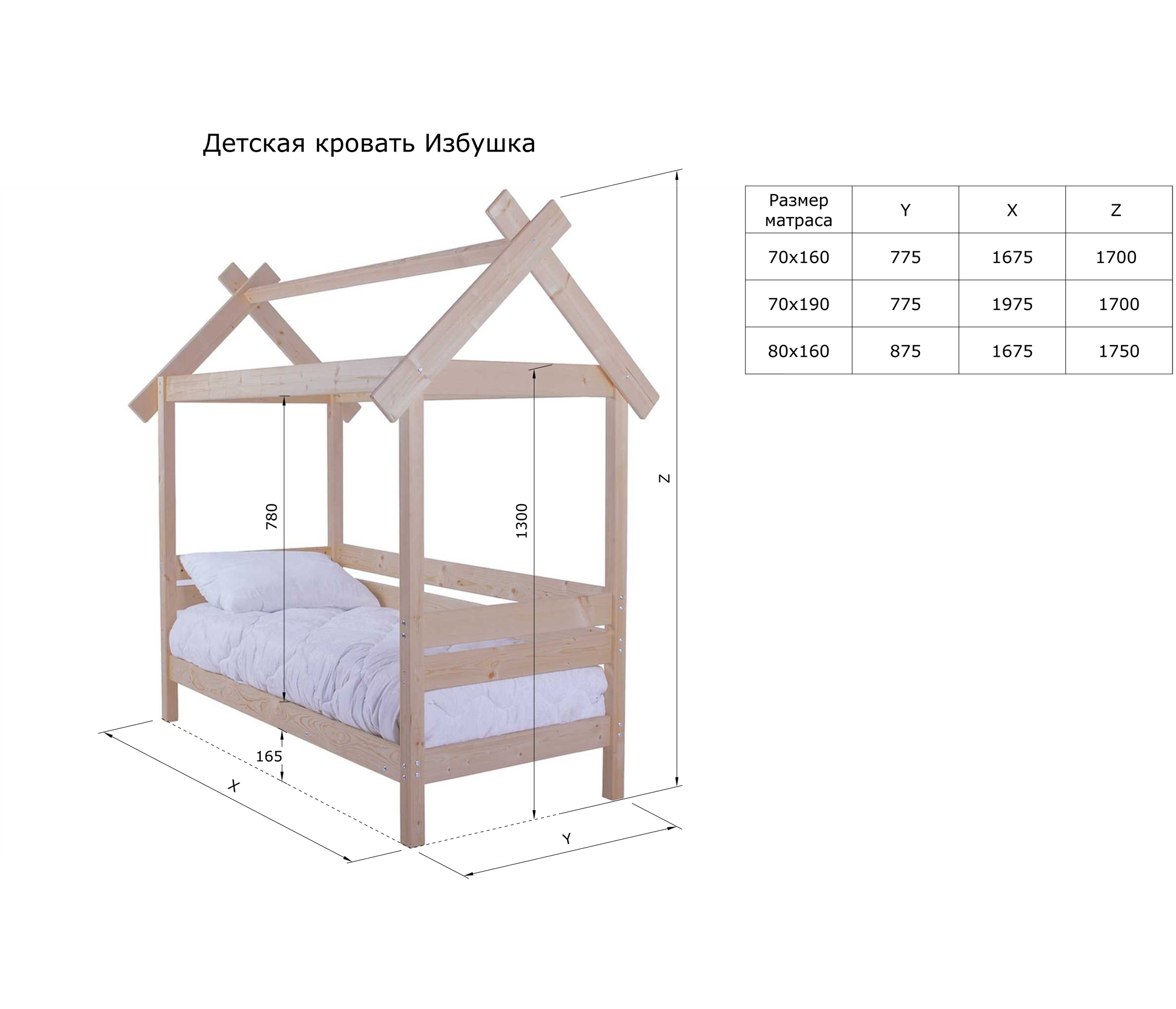 Спальное место 70х190 при нагрузке 120кг.