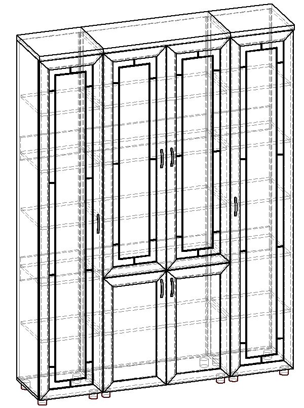 В шкафах с витринами используется тонированное стекло цвета бронза с витражом цвета золото