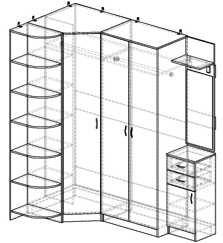 Для корпусов, полок , стеновых панелей, фасадов применяется ЛДСП 16 мм с кромкой 0.4 мм ПВХ.