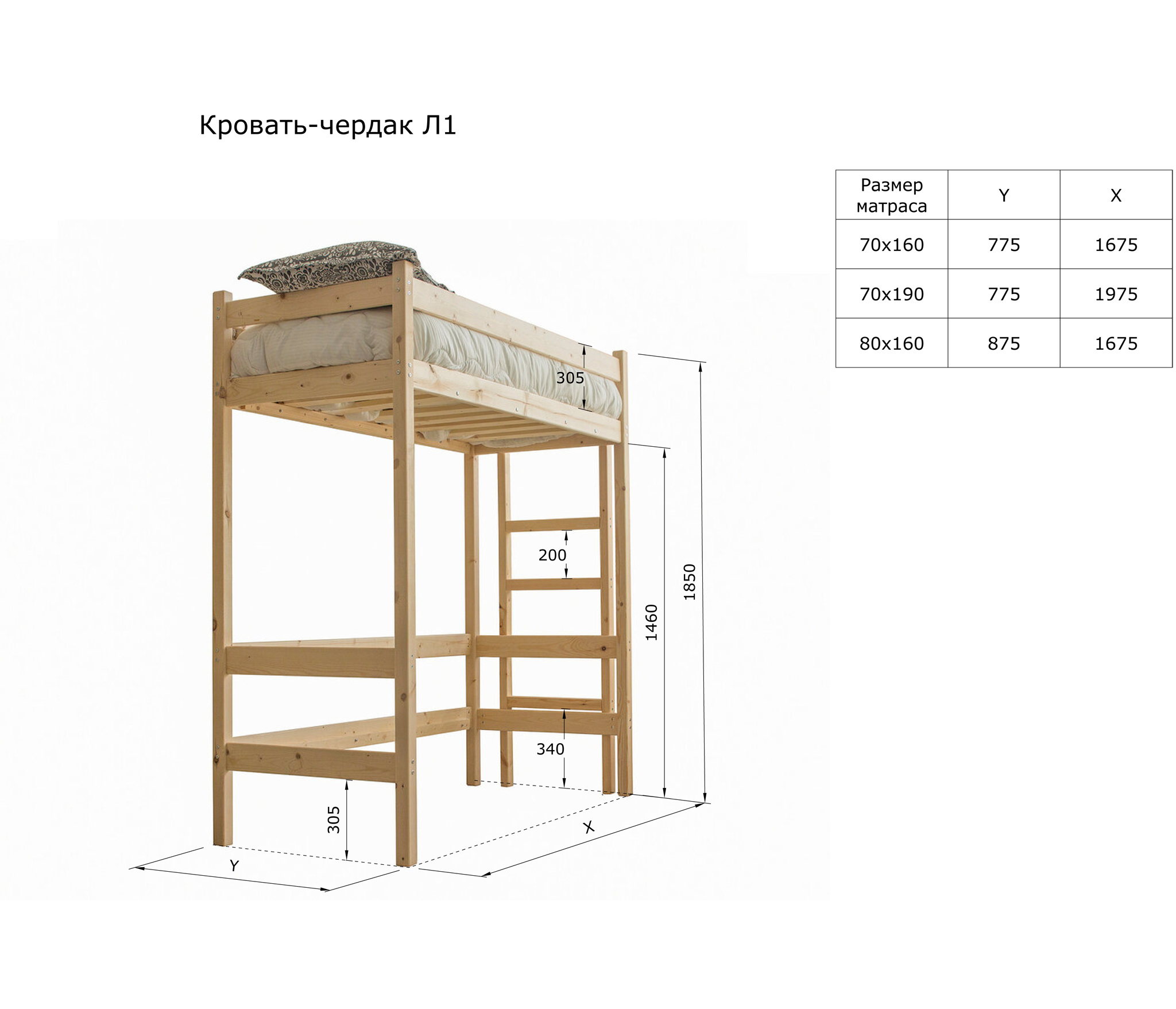 Рекомендуемая высота матраса от 10 до 17 см.