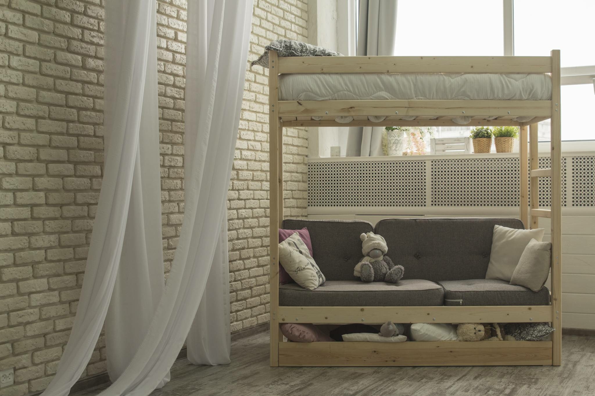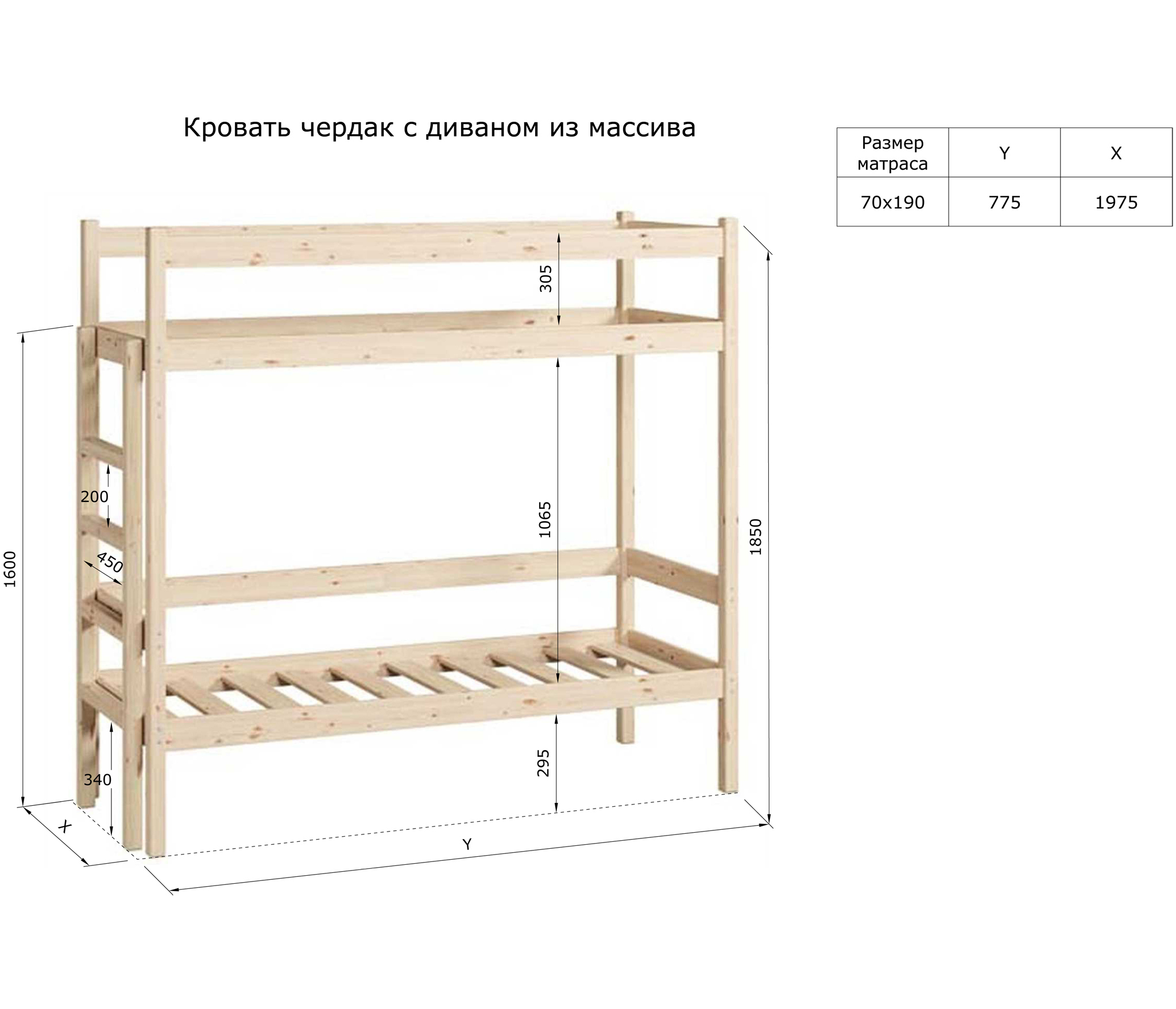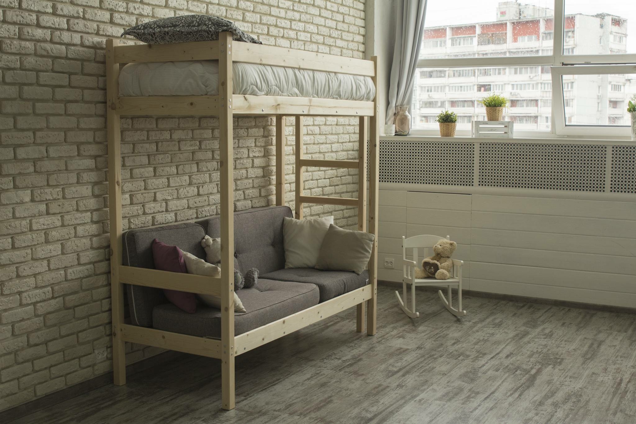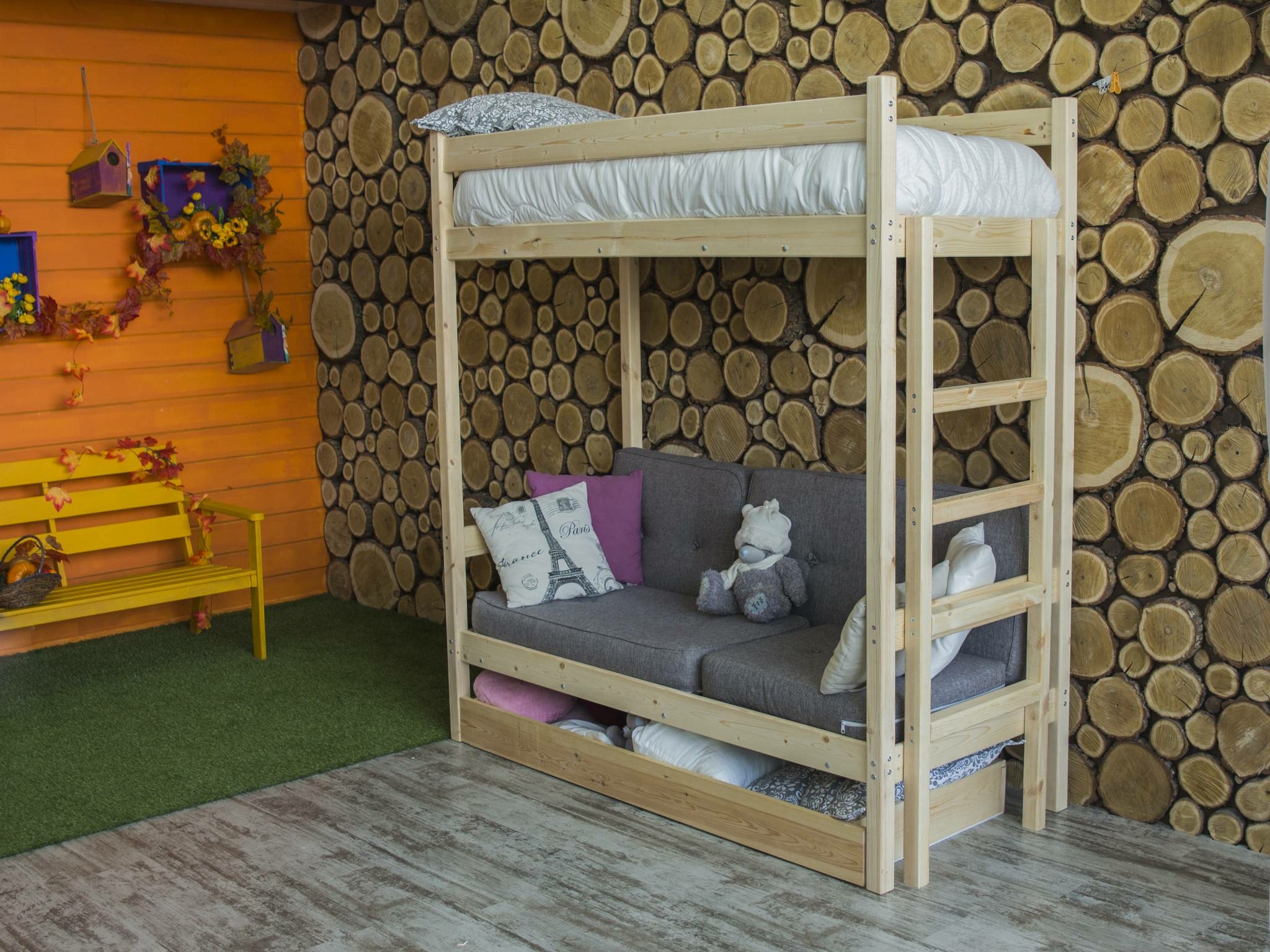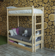 Модель кровать-чердак дополненная диваном представляет собой максимально комфортный вариант спального места для детей и взрослых.