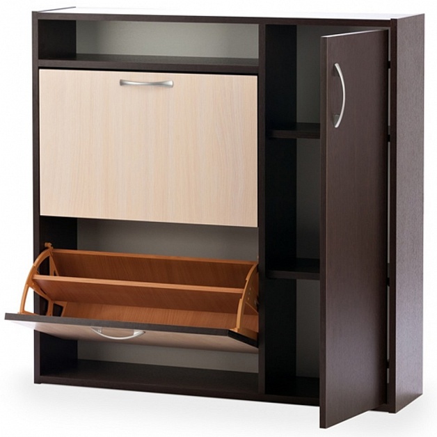 Серия ШК была разработана на базе популярной серии Комфорт, но учитывая пожелания клиентов к обувнице прибавлены открытая полка и тумба с распашной дверью. Это позволяет разместить не только различные мелкие вещи, но и высокие сапожки.