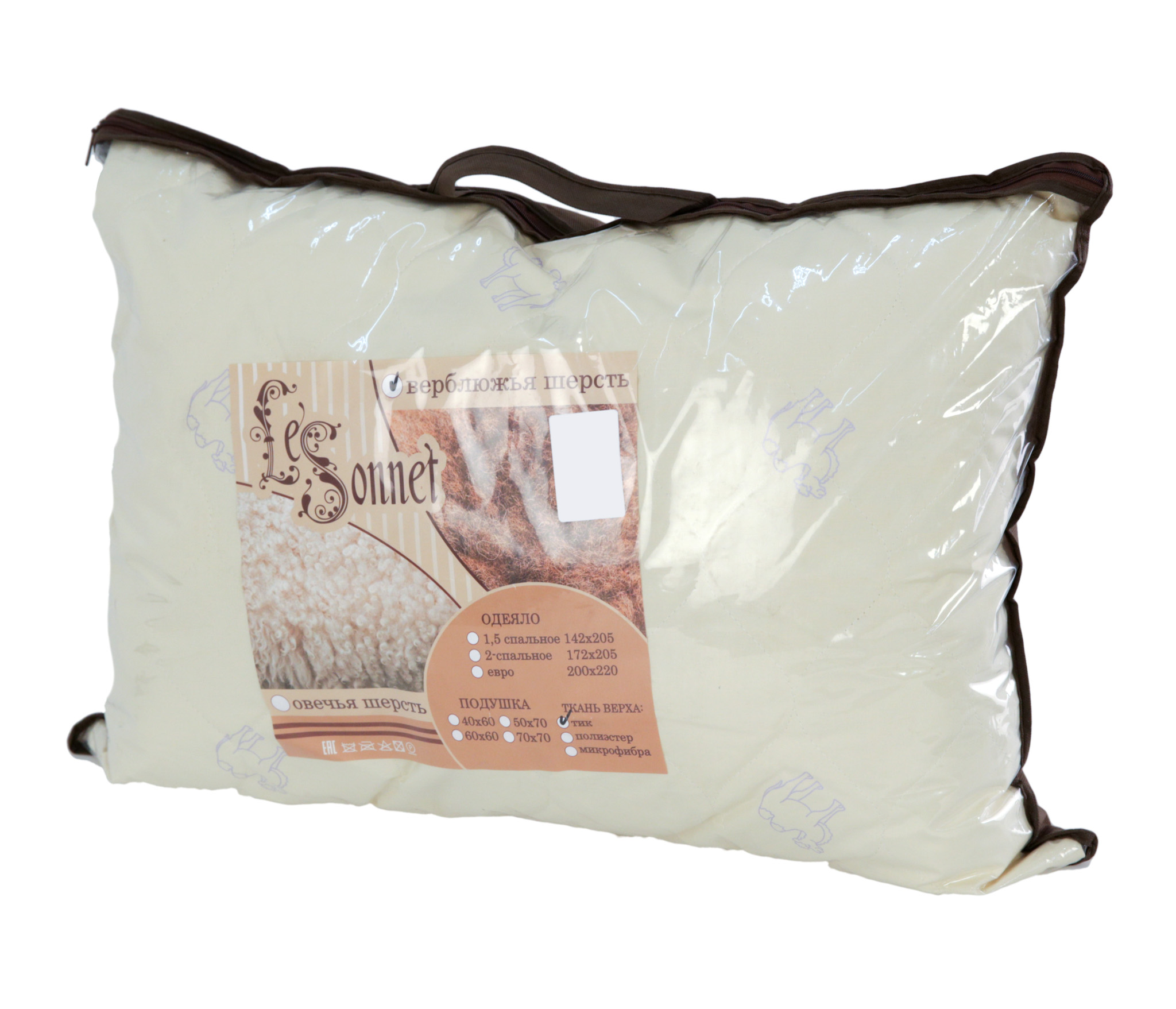 Наполнитель изделий: Смесовый наполнитель: 80% Верблюжья шерсть + 20% полиэстровое высокоизвитое силиконизированное волокно.
