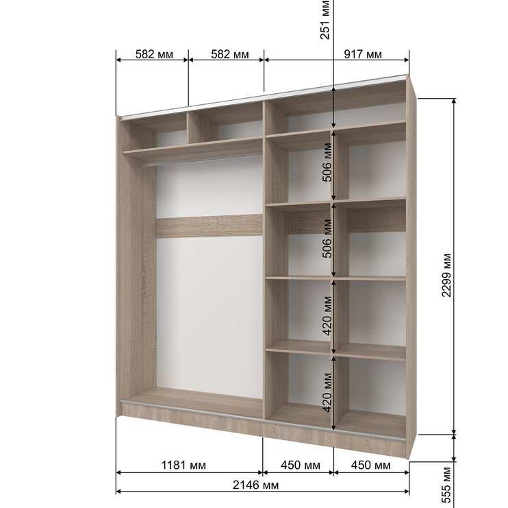 Отзывы о Столплит Шкаф-купе Манхеттен М 2146х2300х555, 2 зеркала Дуб Сонома