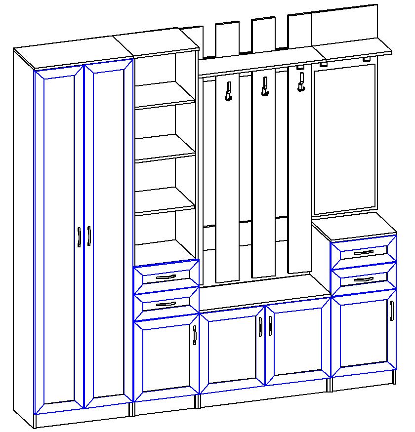 Габаритные размеры композиции (мм) (ШхГхВ): 2200х360х2200