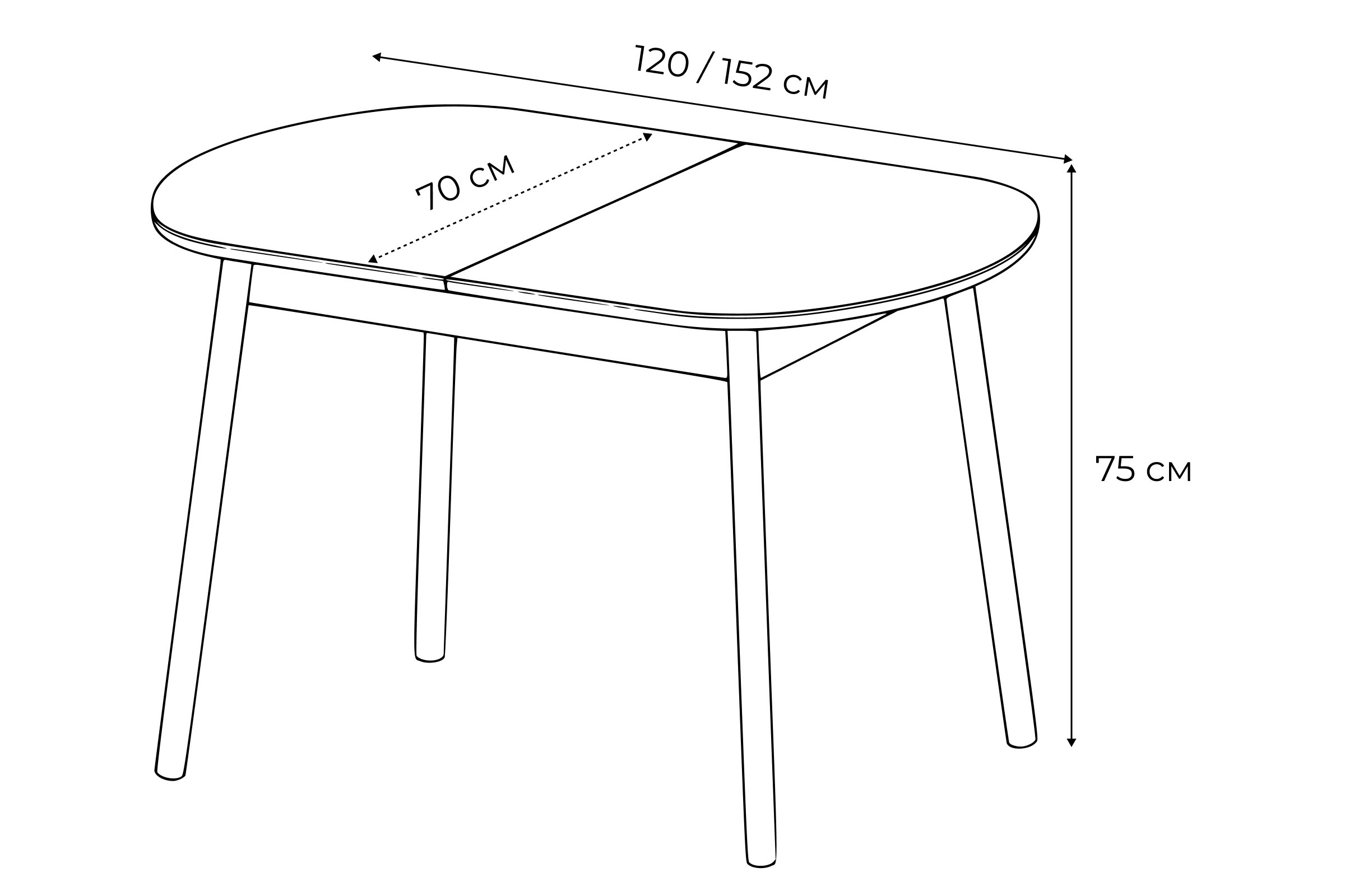 В разложенном виде длина столешницы - 152 см.