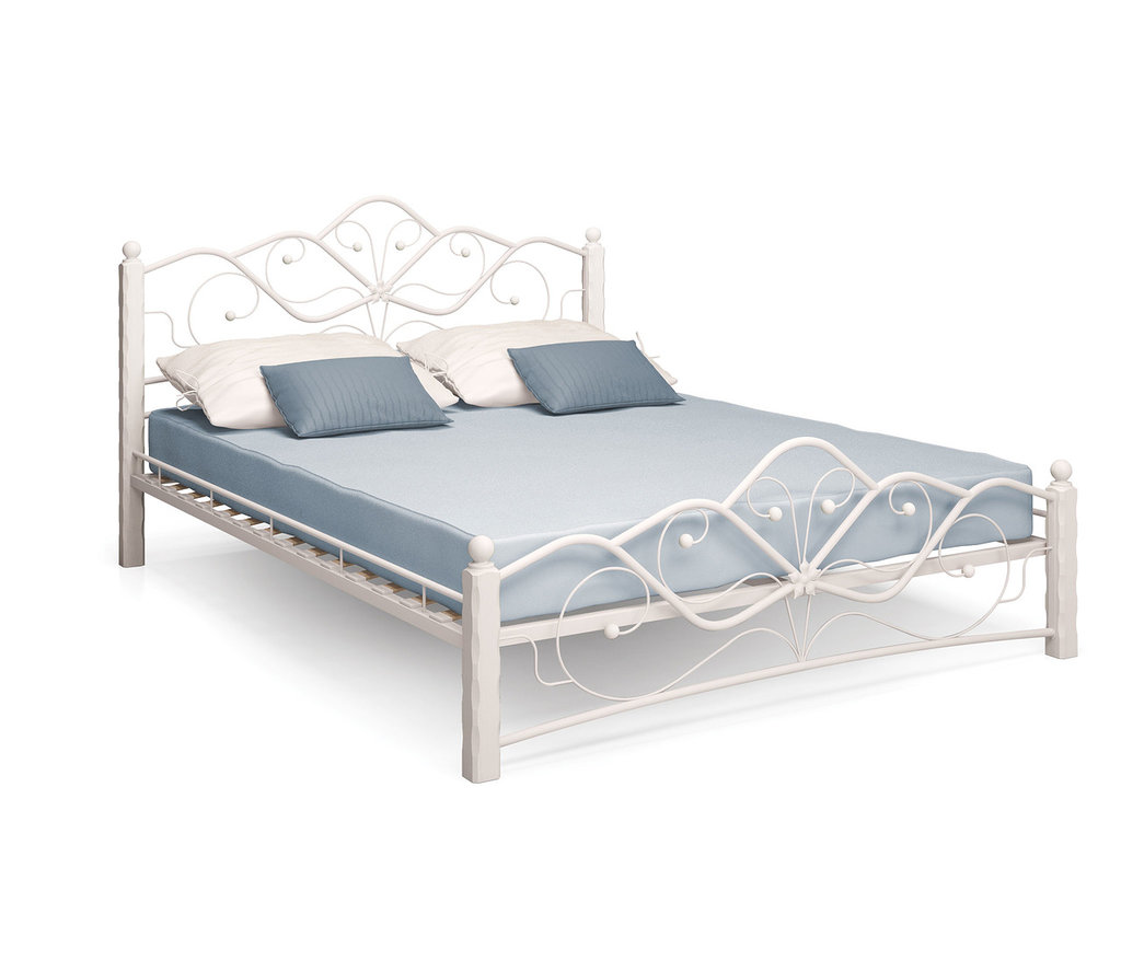 Ножки кровати изготовлены из массива березы, основание - металлическое с березовыми ламелями, спинка и изножье декорированы фигурными металлическими элементами.