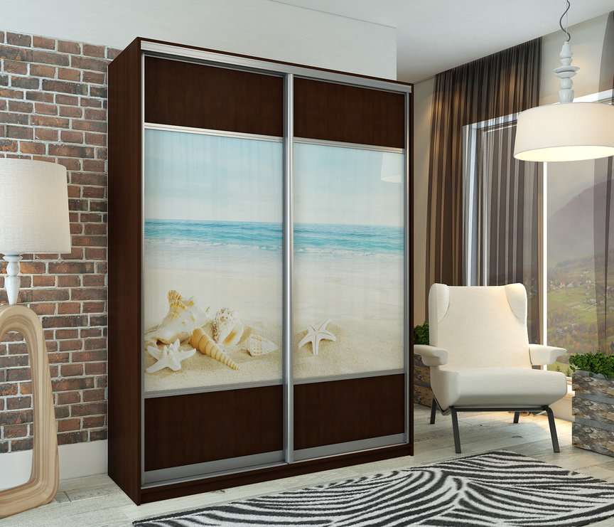Шкаф-купе Бостон 1100х540х2150 Фотопечать Море (Бук тирольский)